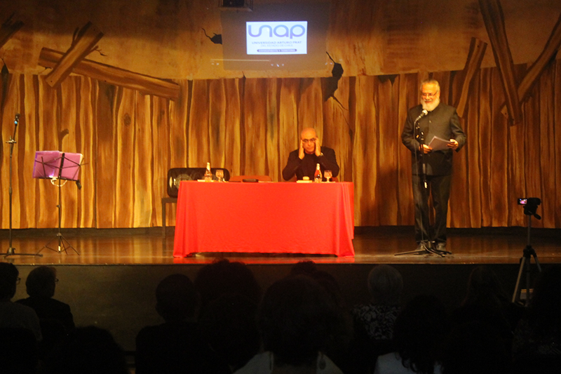Durante el evento, los académicos Patricio Rivera Olguín e Iván Vera-Pinto Soto analizaron el texto, mientras que el cantautor Harold Hurtado y un coro, integrado por miembros del Teatro Universitario Expresión, interpretaron música popular chilena.