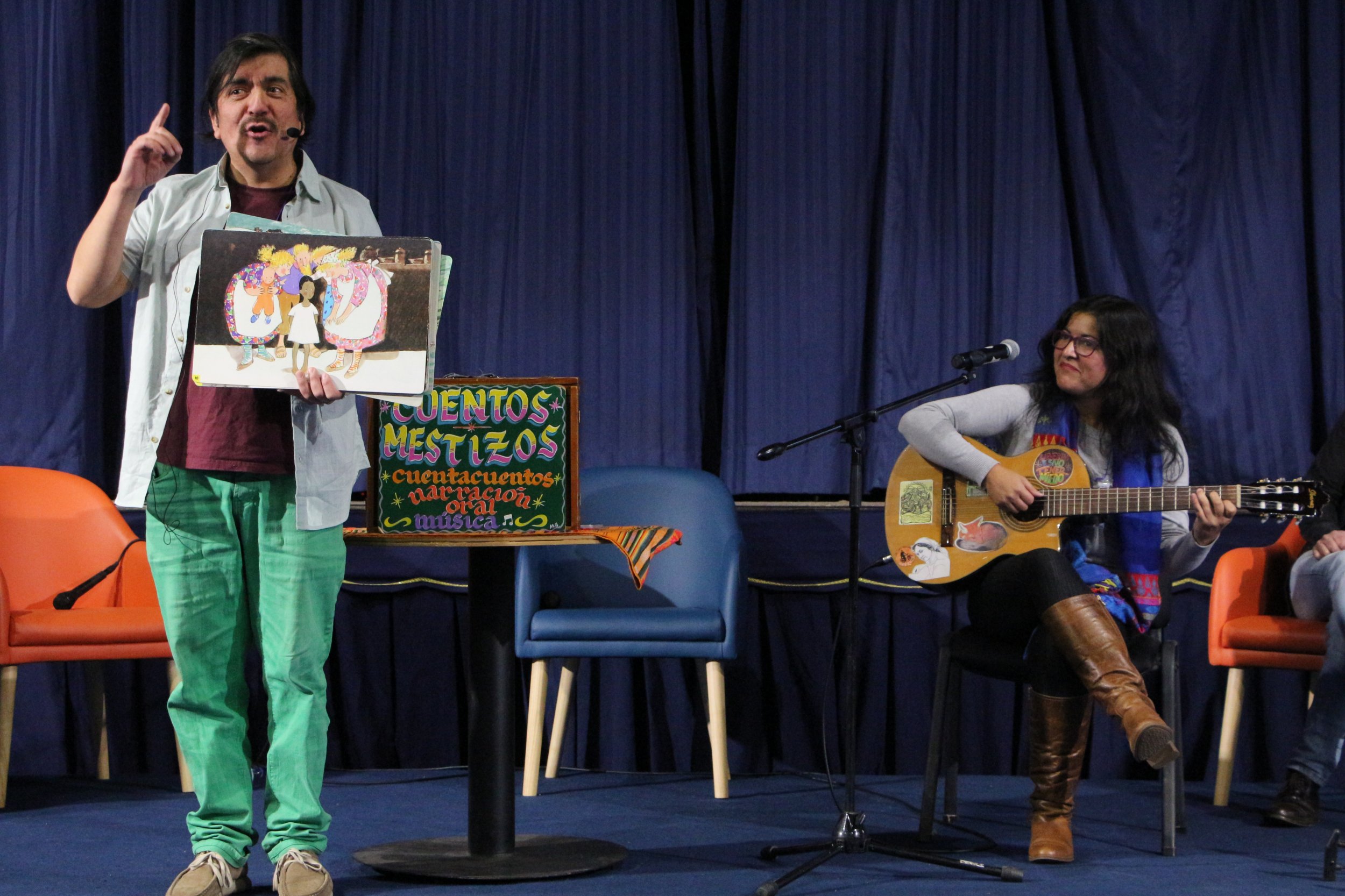 La Compañía Regional de Narración Oral Escénica Cuentos Mestizos, presentó parte de su trabajo llamado "Cuentos a la Sala", con el cual llevan más de 7 años visitando jardines, escuelas, colegios, liceos y universidades a lo largo del país. Al respecto, Carmen Pérez, quien junto a Cristian Francke conforman la agrupación, destacó que “fue un privilegio enorme hablar de nuestro trabajo en un evento tan importante y frente a tantos trabajadores y trabajadoras del mundo de las culturas, las letras y la lectura. Nos vamos contentos por la experiencia y sobre todo por las devoluciones que hemos tenido de lo presentado”.