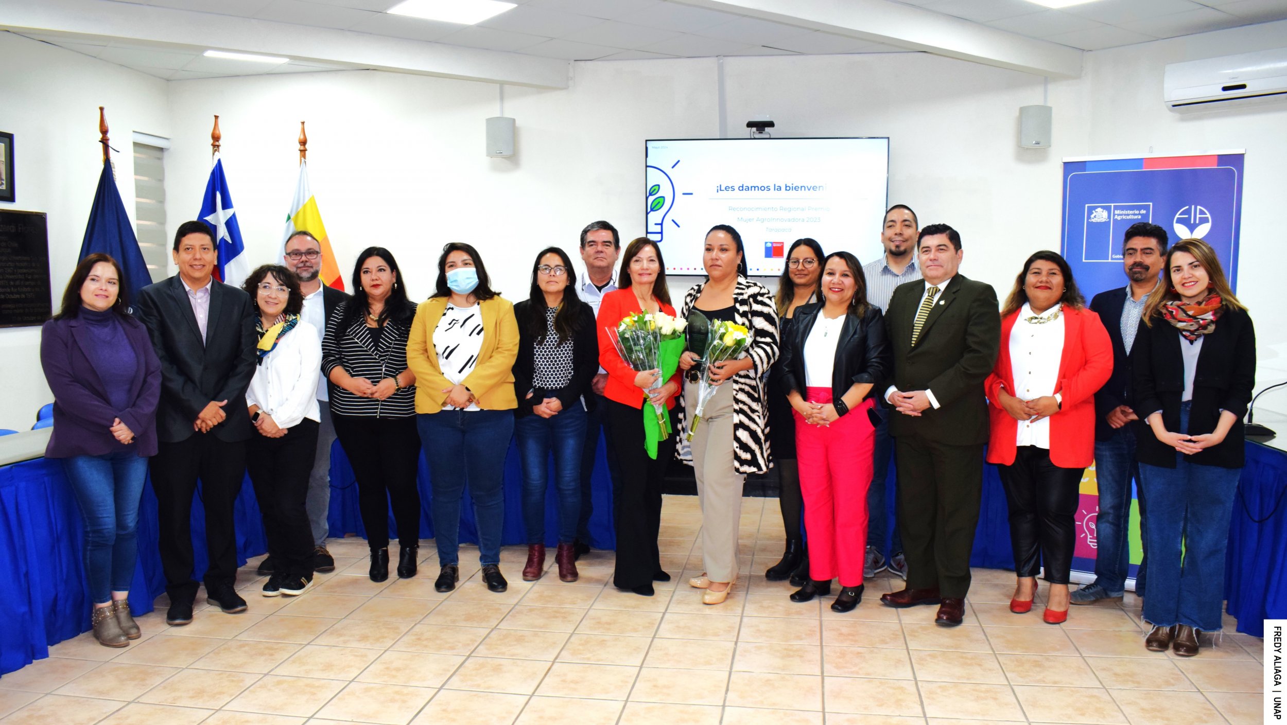 La instancia donde se concedieron ambos reconocimientos, tuvo la presencia del rector de la UNAP, Alberto Martínez Quezada; el jefe de gabinete de Rectoría, Eduardo Huerta; el director de Vino del Desierto, Marcelo Lanino; además, autoridades regionales de gobierno: el seremi de agricultura, Eduardo Justo; la seremi de la Mujer y Equidad de Género, Noemí Salinas; el seremi de Gobierno, Rodrigo Vargas; la delegada presidencial de la Provincia del Tamarugal, Camila Castillo; y Felipe Olivares, representante regional de FIA, entre otros representantes de servicios públicos.