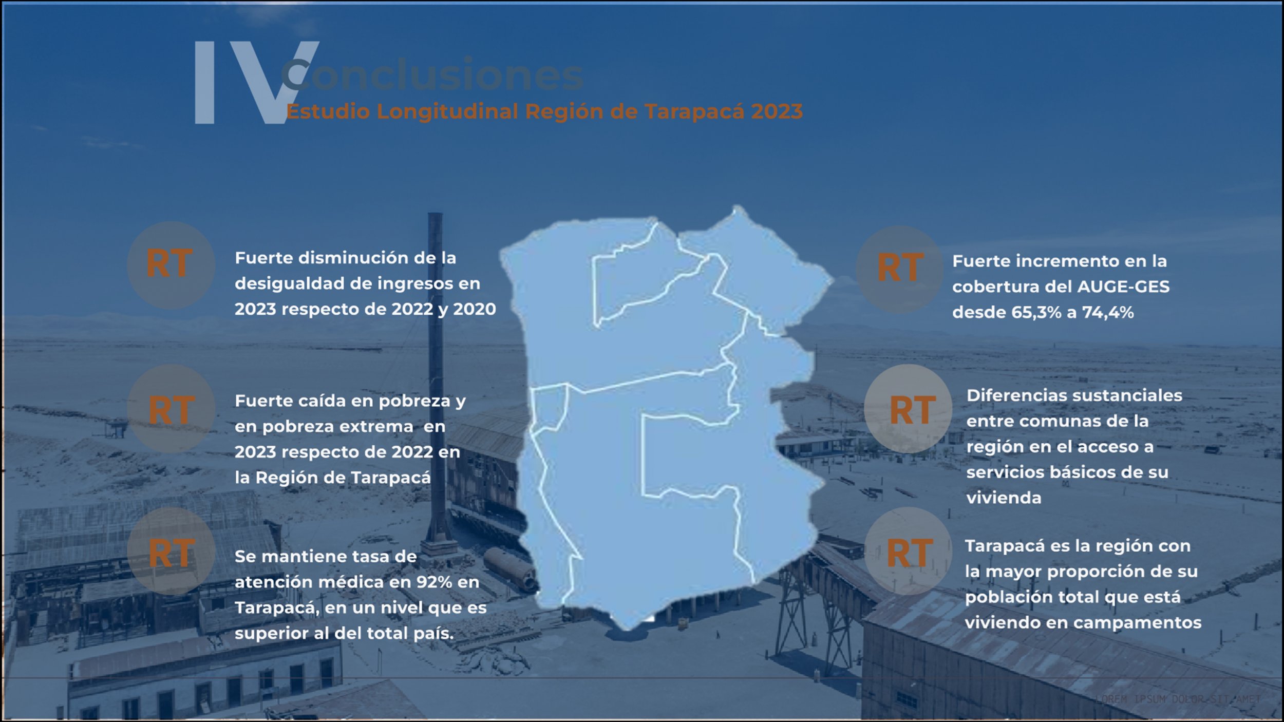 Así, según este estudio, Tarapacá es una de las dos regiones del país que recuperó su situación pre pandemia en el mercado laboral. Otro aspecto positivo es que aumentaron los niveles de acceso en salud, incluyendo la cobertura AUGE, señaló Bravo.