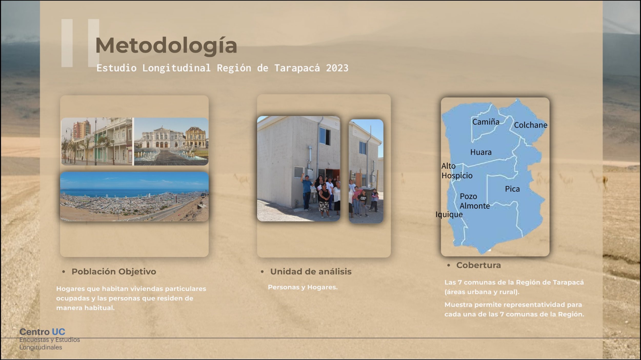 El tamaño de la muestra consideró 3 mil 751 hogares y 10 mil 875 personas de las siete comunas de Tarapacá.