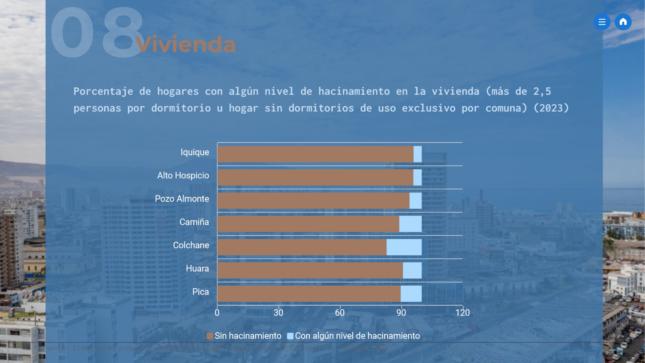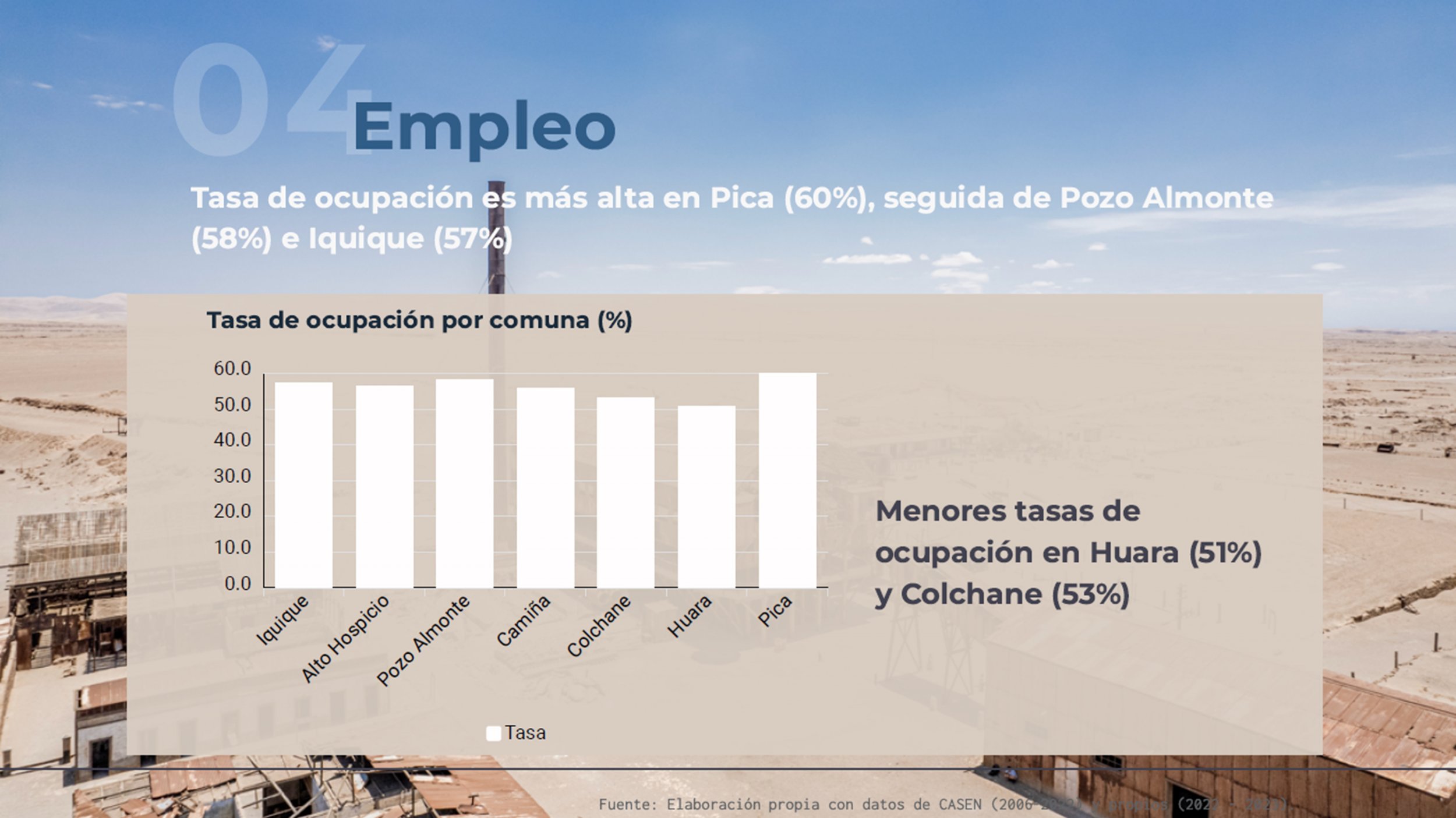 En cuanto a los mayores desafíos regionales, la medición destacó la informalidad laboral, con niveles mucho más elevados respecto a otras regiones. También la falta de viviendas, o déficit habitacional, es otro punto negativo que arrojó la encuesta, siendo Tarapacá la región con mayor proporción de población viviendo en campamentos, y donde el 60% de quienes habitan estos lugares corresponde a personas migrantes.