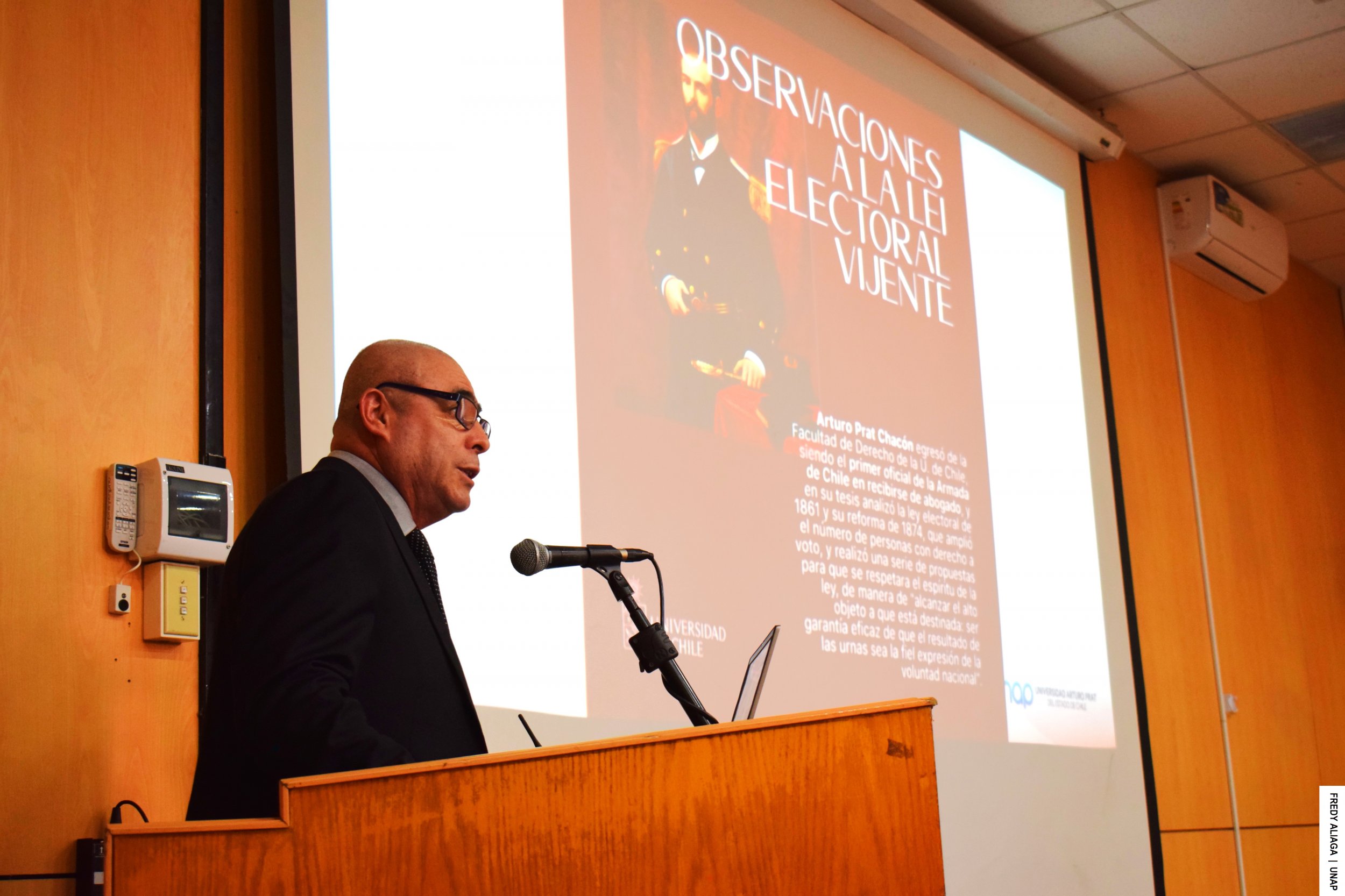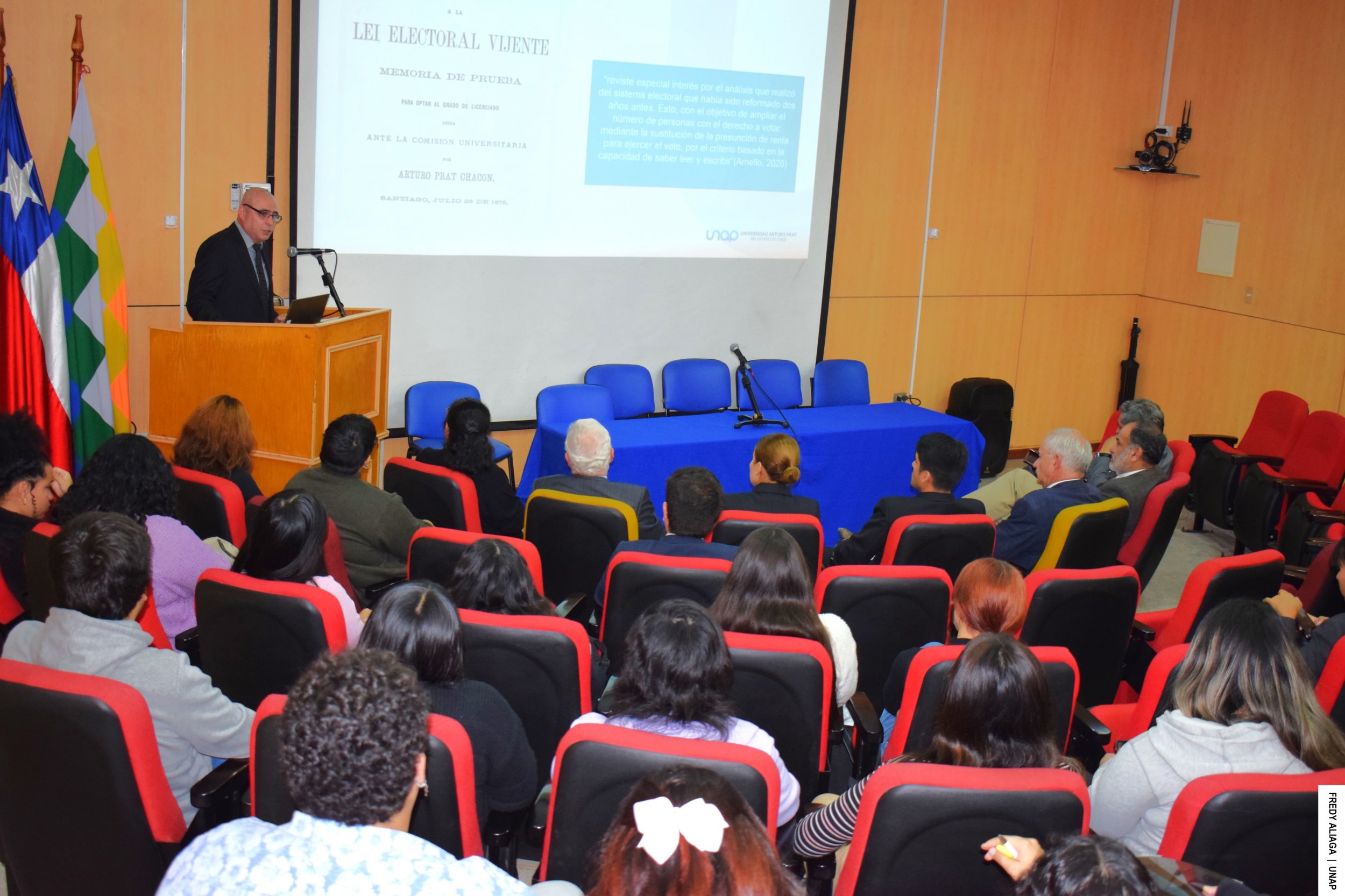 “Arturo Prat Chacón: el abogado”, se tituló la clase magistral que fue impartida por el profesor de la Facultad de Ciencias Humanas de la UNAP, Patricio Rivera Olguín, Doctor en Didáctica de las Ciencias Sociales, la Historia y la Geografía.