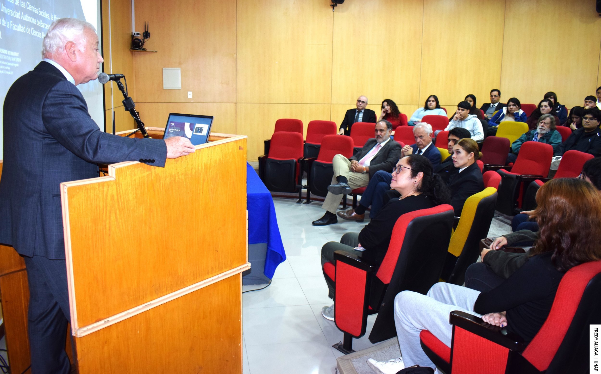 El decano, además valoró que la actividad académica se haya realizado con el apoyo del Colegio de Abogados de Iquique. “Para nosotros es especialmente relevante y esperamos que esta sea la primera de muchas otras instancias conjuntas, porque nos interesa tener cercanía con quienes realizan la tuición ética del ejercicio de la profesión”, dijo. Asimismo, agradeció la participación del Dr. Patricio Rivera, como expositor principal del evento. “Nosotros somos unos eternos agradecidos del trabajo del profesor Patricio Rivera, porque, además, ha hecho clases en la carrera de Derecho, en un curso de historia social de Chile. Por tanto, ya conocemos la calidad de su trabajo y estudios”, comentó.