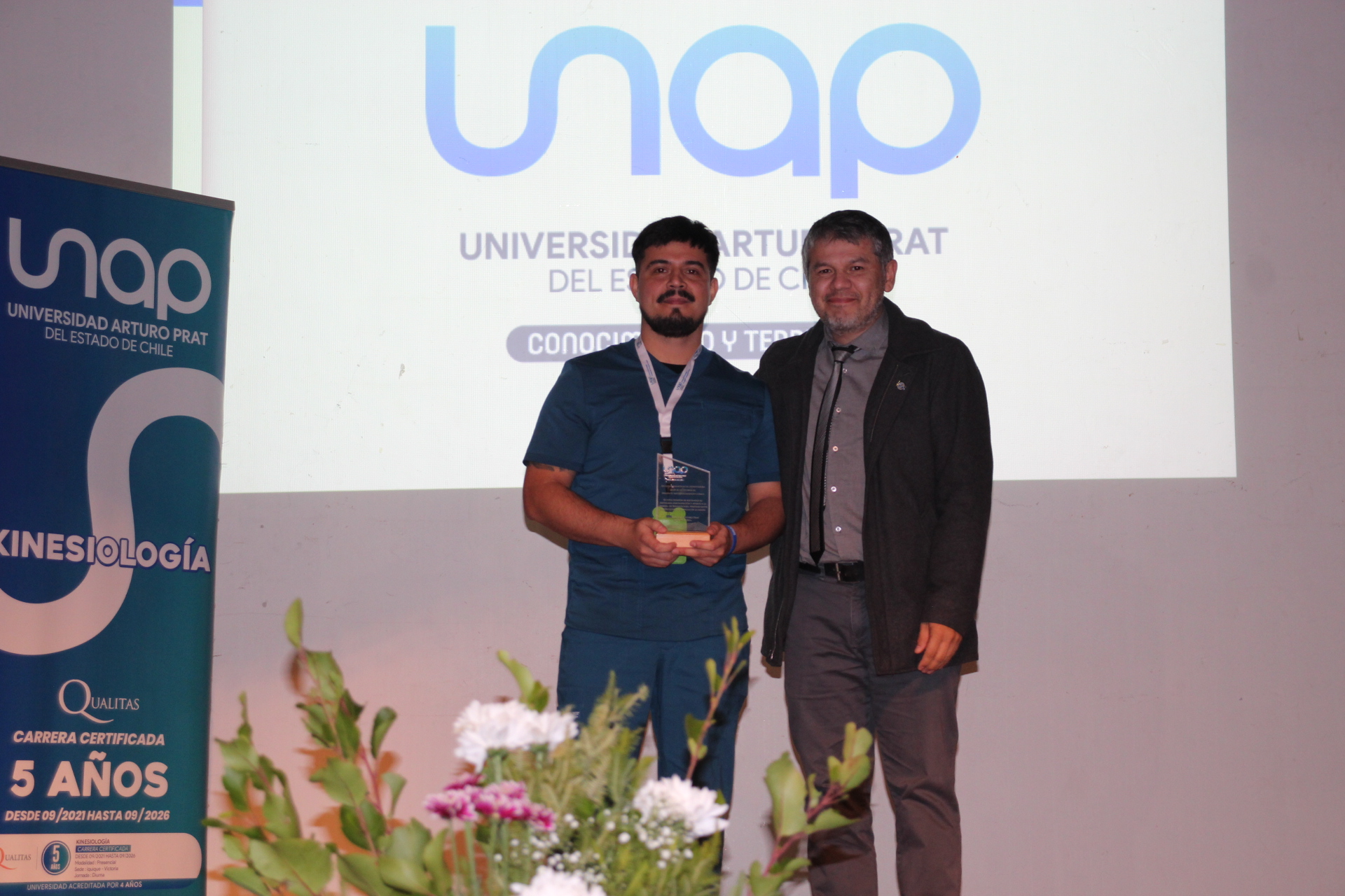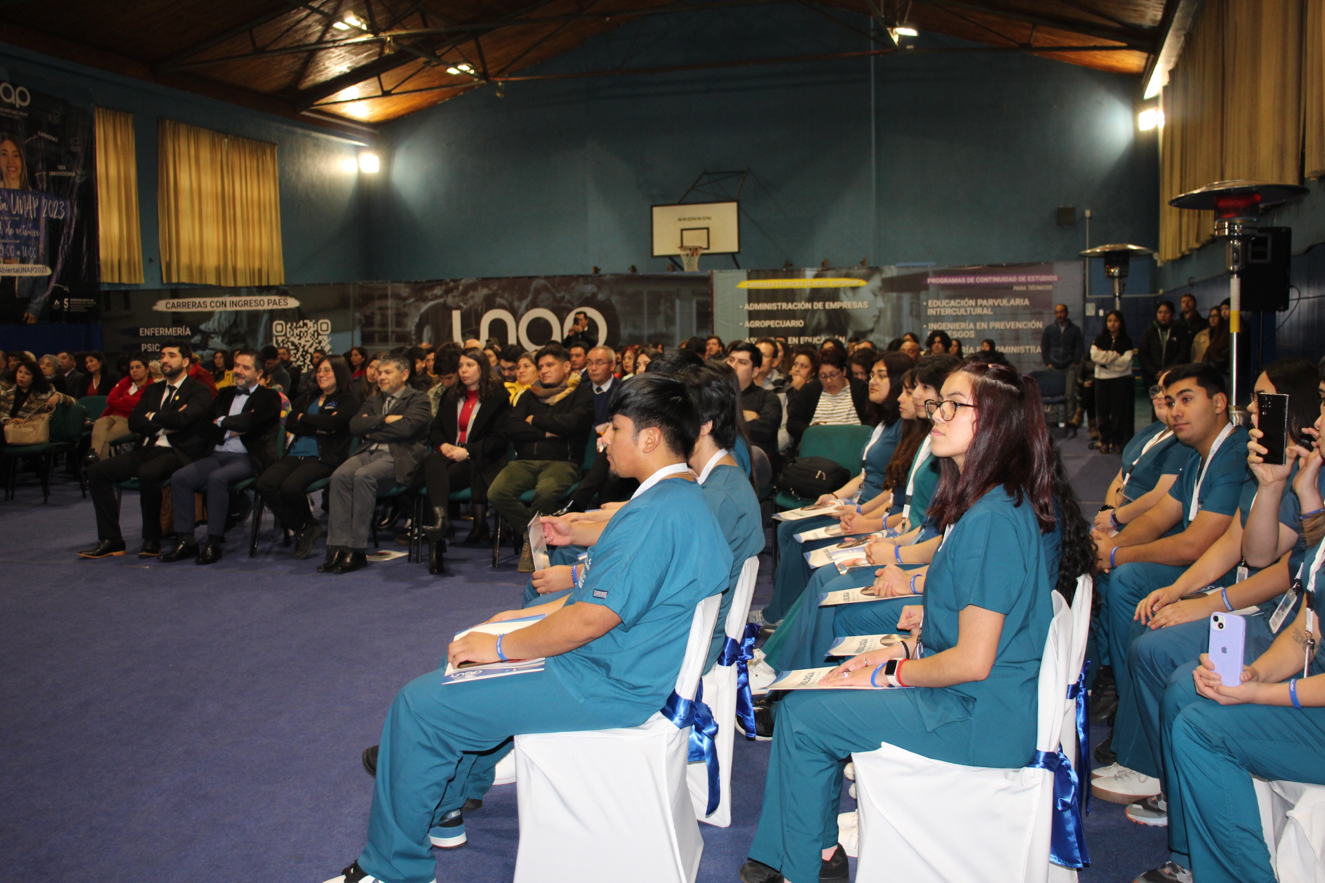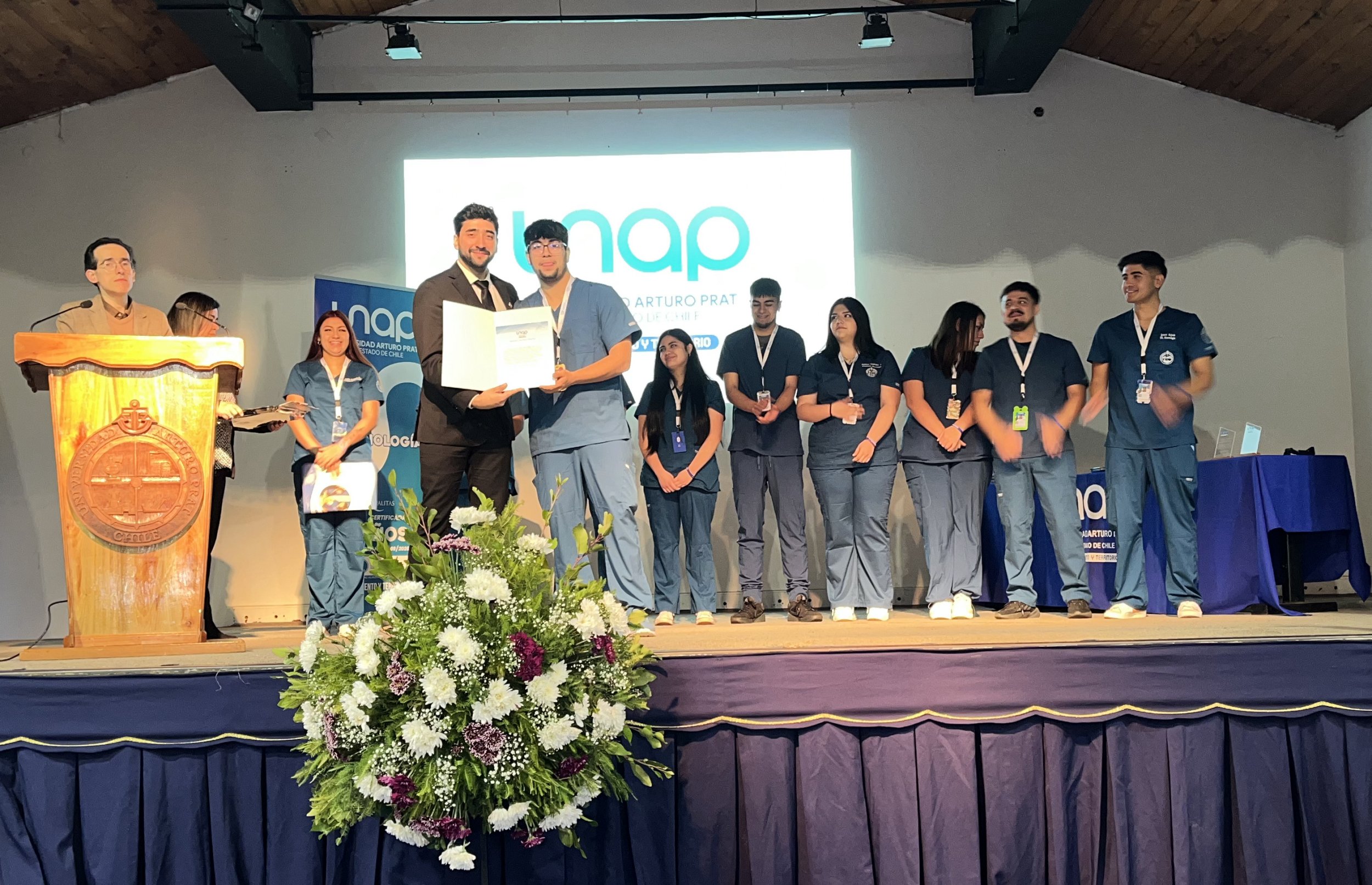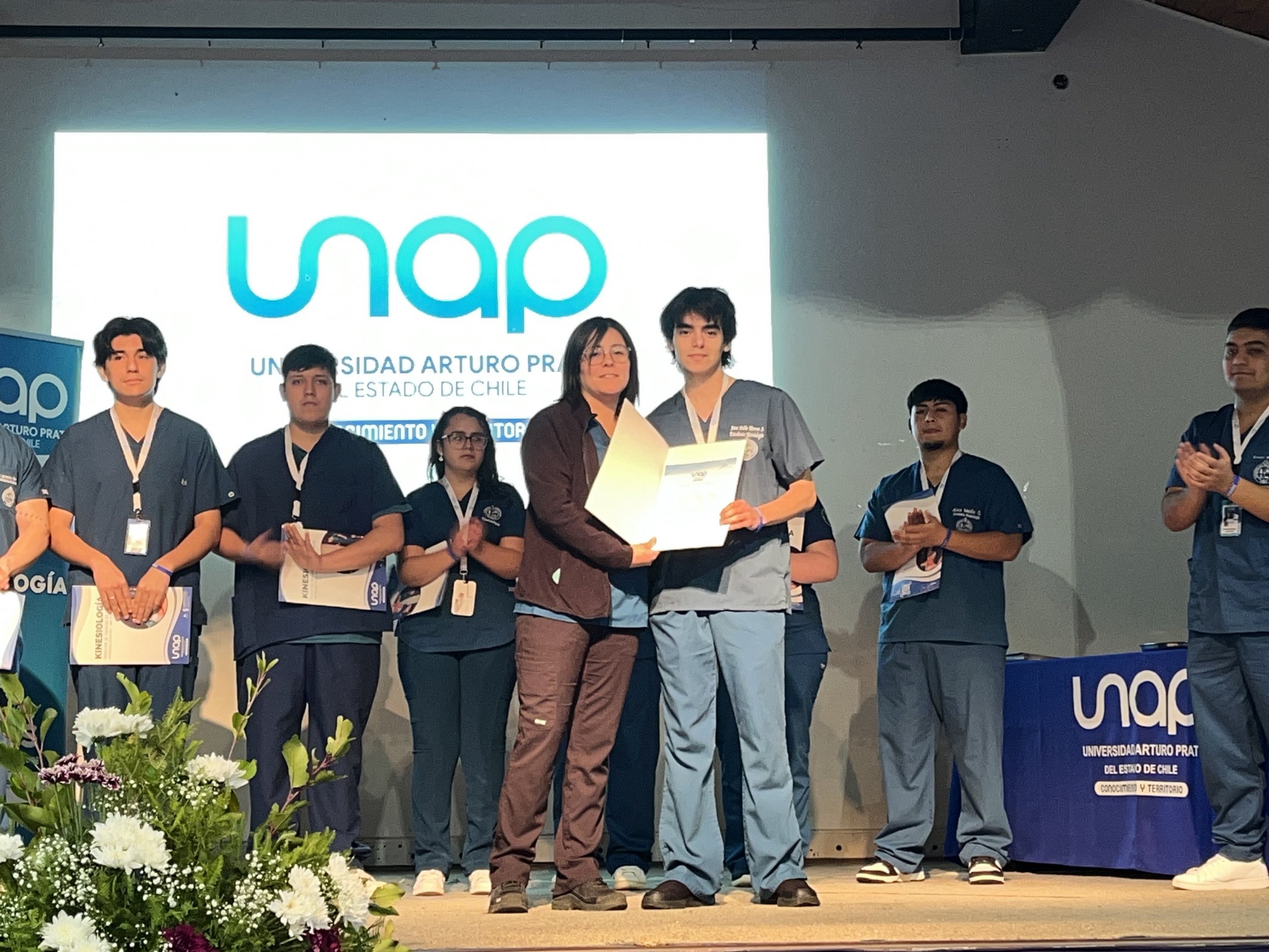 Finalmente, llegó el turno de la ya tradicional “Ceremonia de Compromiso Vocacional” en el Gimnasio de la UNAP, en donde treinta y cinco estudiantes de segundo año marcaron el inicio de sus prácticas curriculares con la entrega de diplomas, sumada a discursos por parte de las autoridades y a la charla del Kinesiólogo Christian Bobadilla, sobre el manejo neurokinesiológico en niños en rehabilitación; además de dos reconocimientos concedidos por alto desempeño académico y al mejor compañero.