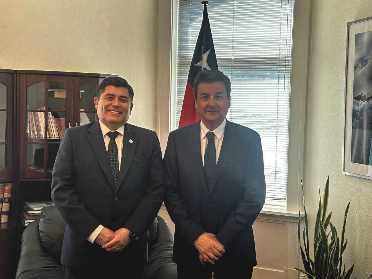 Rector UNAP, Alberto Martínez Quezada, junto al embajador de Chile en Noruega, Luis Plaza Gentina.