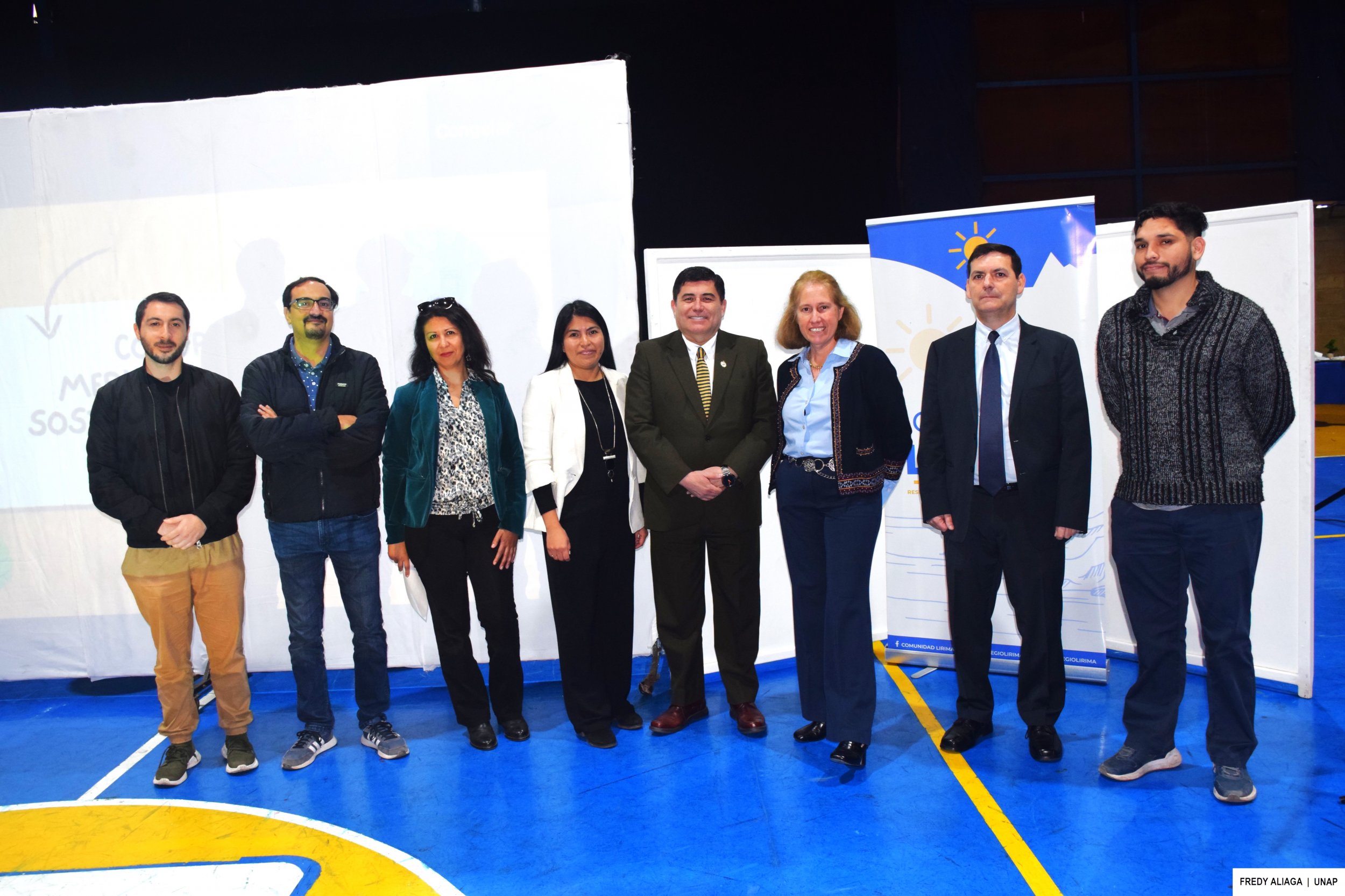 Los docentes de la Facultad de Recursos Naturales y Renovables, Miguel Zarzar, Lucas Hernández y Alexis Velásquez, integraron el panel de expertos que evaluó y orientó 16 trabajos científicos de estudiantes de enseñanza media. Las iniciativas, presentadas en el Colegio Lirima, de Iquique, fueron propuestas para solucionar problemas ambientales. Como invitado también estuvo el rector Alberto Martínez.