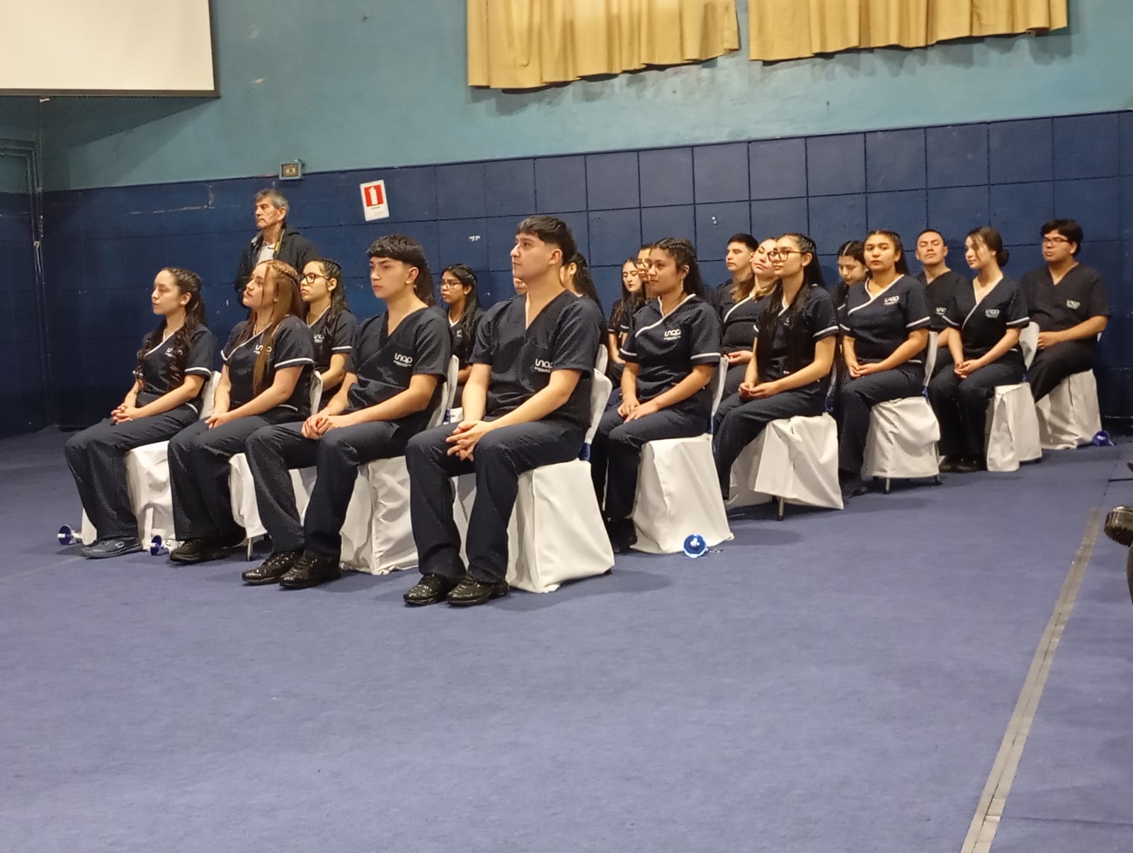 Repitiendo el mismo sendero que las admisiones anteriores, las y los enfermeros en formación ingresaron al recinto portando velas como símbolo de la luz del conocimiento, dando paso al Himno Nacional para luego escuchar el discurso de bienvenida por parte del Jefe de la Unidad de Docencia y Director Subrogante, Daniel Martínez, quien llamó a las unapinas y unapinos a poner a prueba los conocimientos adquiridos en el aula, destacando este nuevo desafío, el que requerirá estar siempre alerta, ser responsables, saber utilizar todos sus recursos y de nunca tener miedo a preguntar, teniendo claro que esta es la etapa en donde más se aprende, junto con ser capaces de disfrutar de este importante momento.