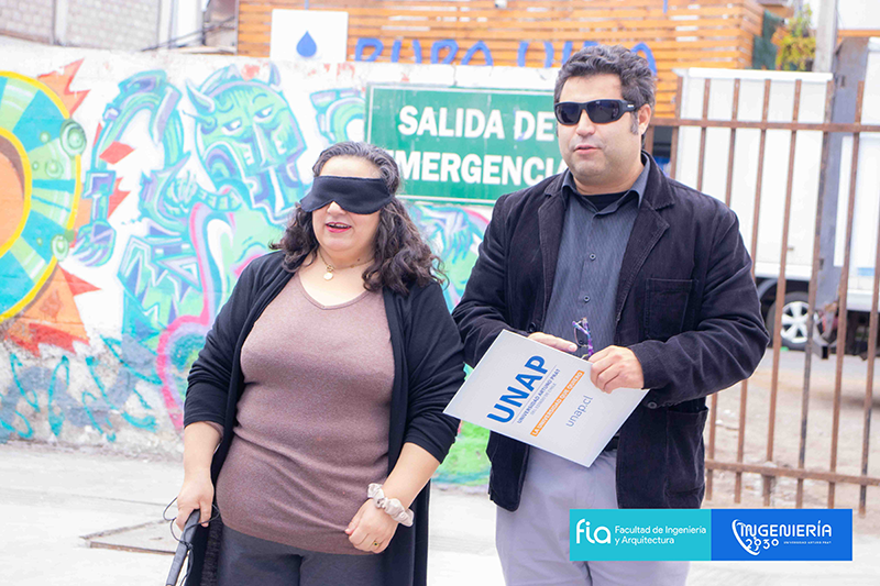 Con los ojos vendados, audífonos y en sillas de ruedas, los académicos y administrativos de la Facultad de Ingeniería y Arquitectura, divididos en tres grupos, se desplazaron por distintos caminos al interior de la Casa Central UNAP y en Campus Baquedano. En la oportunidad, pudieron vivir, sentir, detectar y empatizar con las diferentes problemáticas que aquejan a las personas con distintas discapacidades.