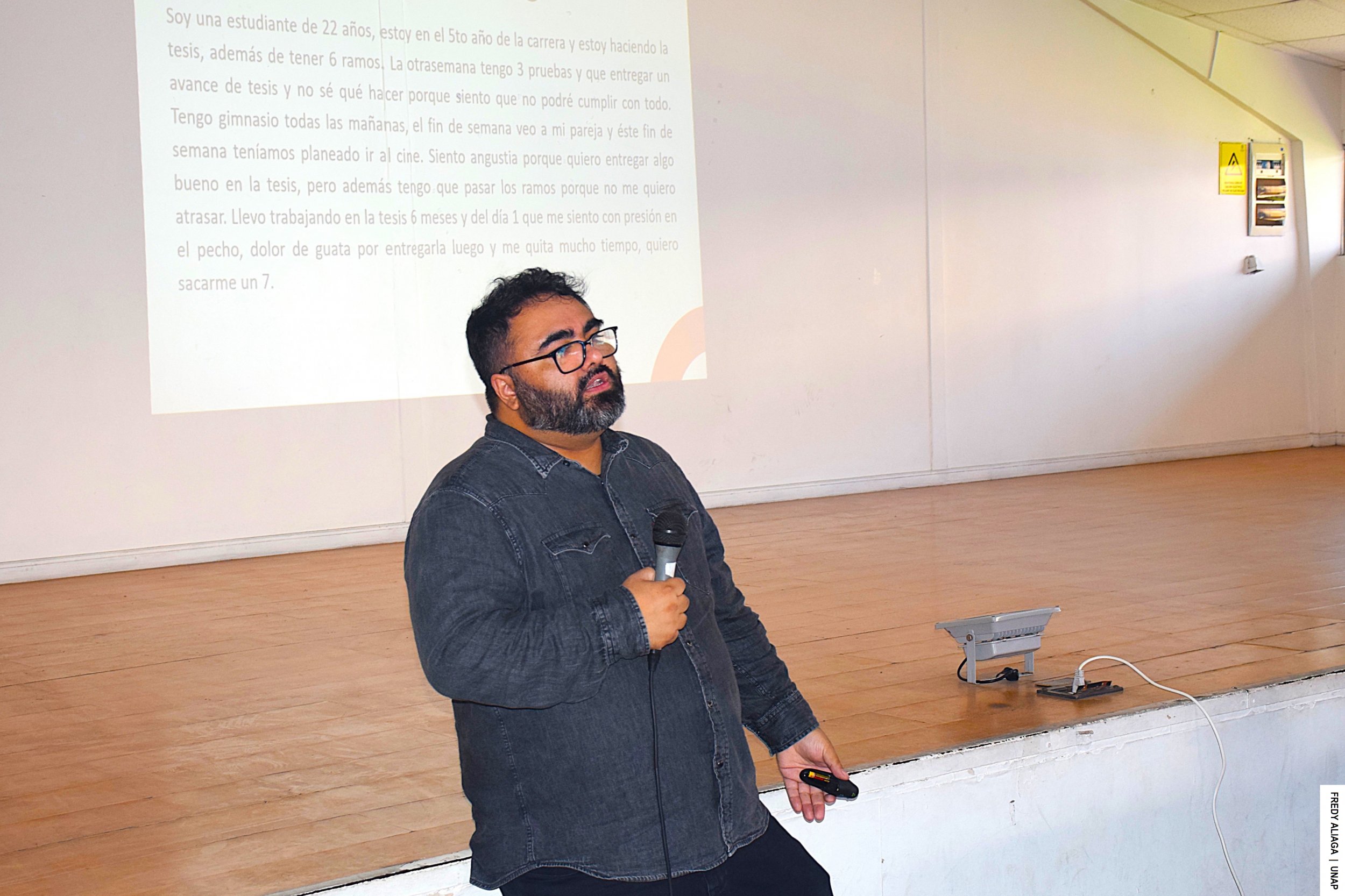 Ivo Percic, estudiante de cuarto año de Ingeniería Civil de Minas y tutor de esa carrera, agradeció el aporte de la actividad organizada por UNIA. “Muy buena esta instancia para ver maneras de solucionar el estrés y no temerle, porque también puede ser bueno”, afirmó.
