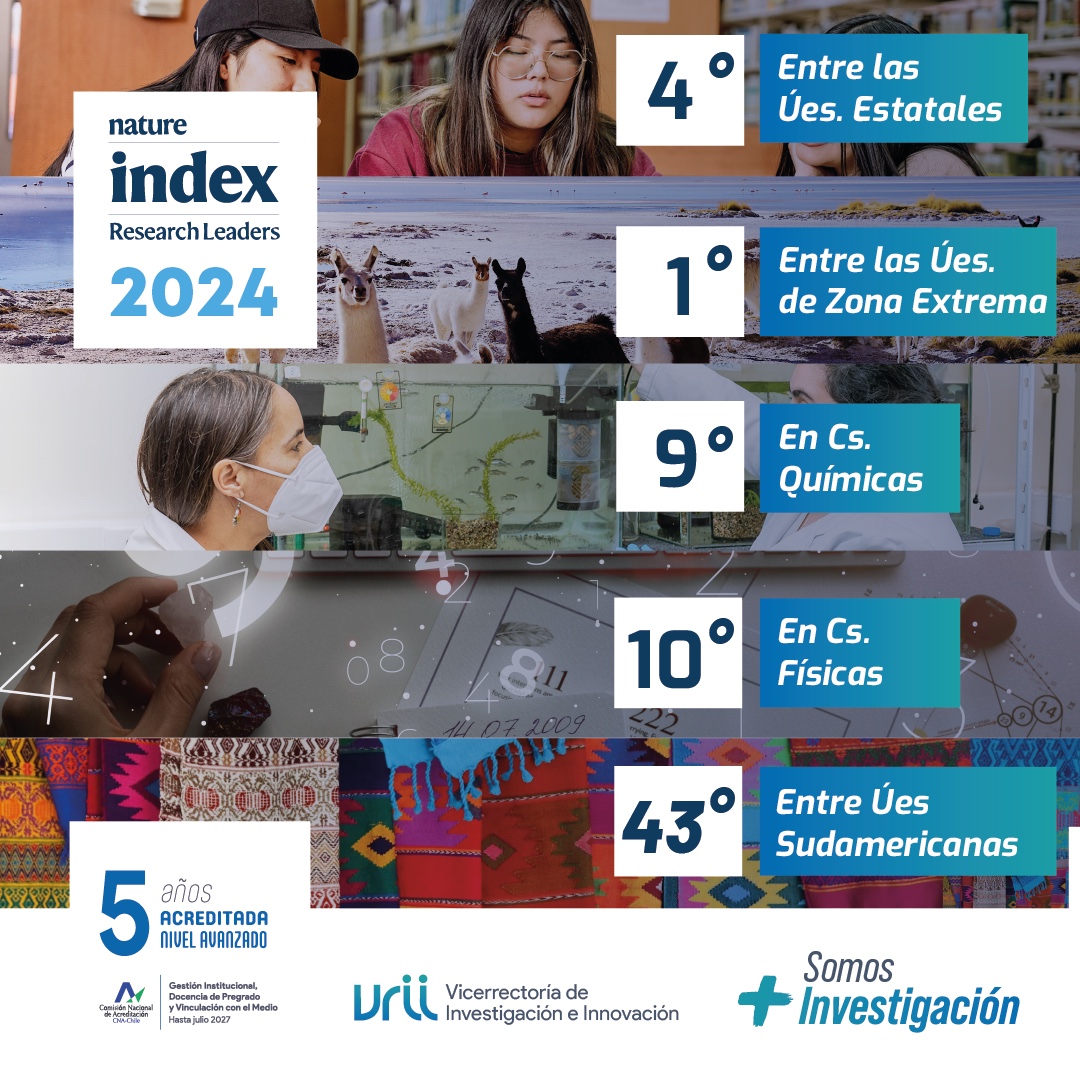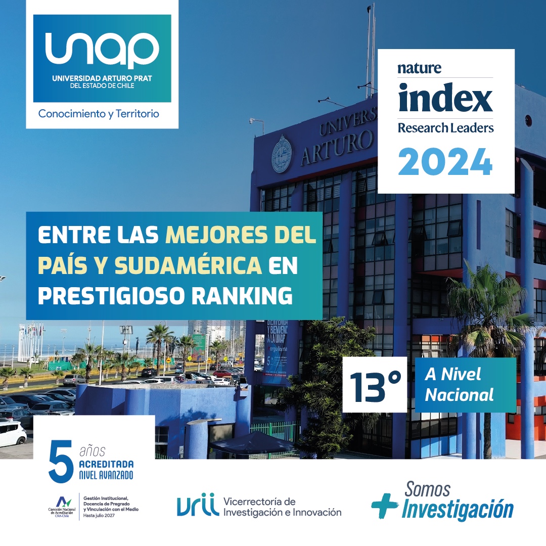 Por quinto año consecutivo, la productividad y calidad de la investigación científica de la Universidad Arturo Prat (UNAP) ha sido destacada en el Ranking Nature Index 2024 Research Leaders, que anualmente elabora el grupo Nature, reconocido mundialmente por su rigurosidad, impacto y prestigio académico.