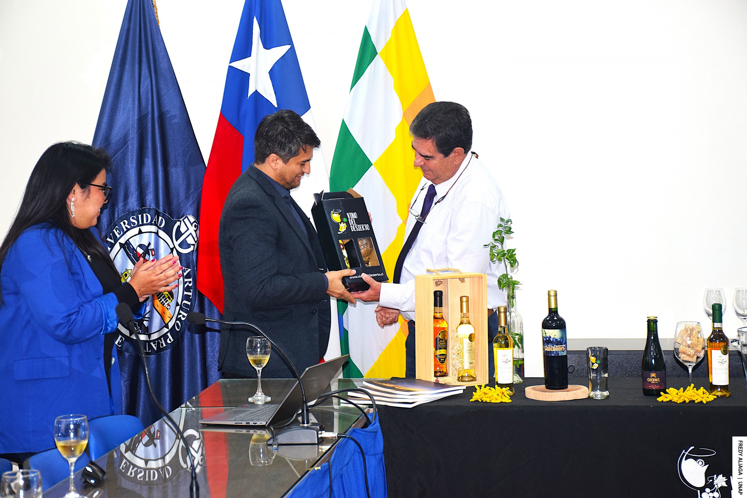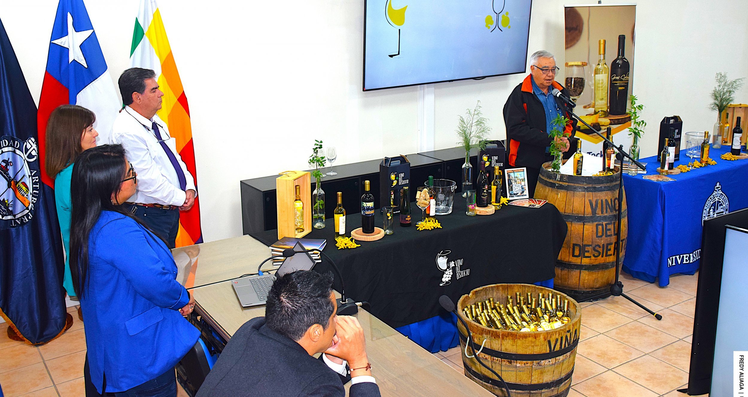 Durante la ceremonia, el rector Alberto Martínez señaló que Vino del Desierto es uno de los trabajos de investigación destacados en la UNAP, porque constituye un emblema del territorio con proyección nacional e internacional, resultado de la generación de conocimiento y compromiso con las comunidades. Comentó además que es símbolo de esfuerzo y dedicación que ha movilizado voluntades con fructíferas alianzas para el territorio y sus habitantes, que incluyen apoyos de la gran empresa minera, sectores productivos, hotelería, gastronomía y artesanía, emprendedores y emprendedoras para engrandecer la identidad de Tarapacá.