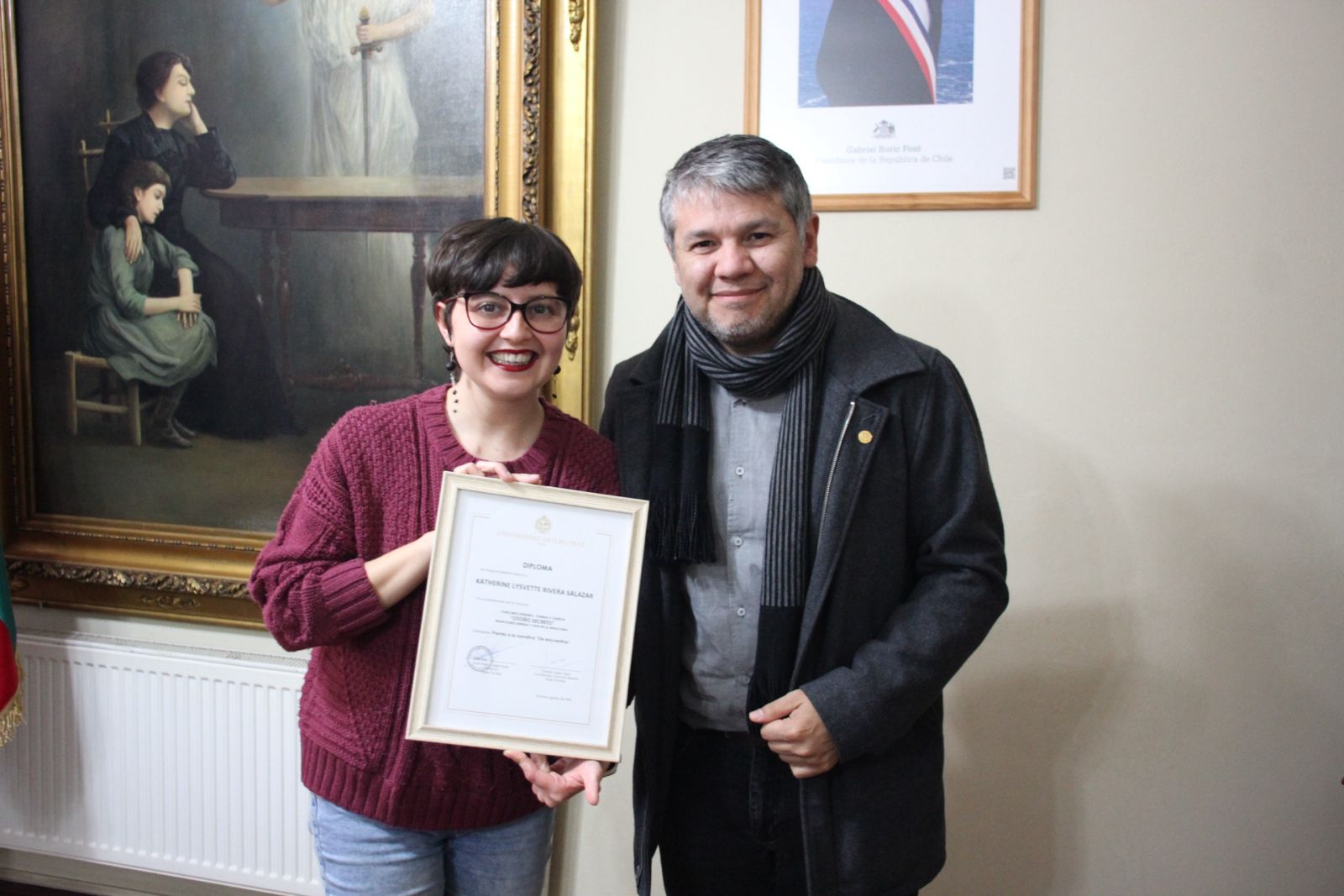 Por el premio a la narrativa, la ganadora fue la académica de la carrera de Psicología Katherine Rivera, por su cuento “De encuentros”, distinción que fue recibida en representación de la Docente por su colega Naomi Rodas, quien además aprovechó de leer el relato. Para la categoría de creatividad, esta recayó en la profesional de la Unidad de Innovación, Johanna Pajkuric, por su poema “Lo que guarda el otoño sureño en su manto de colores”, el que también fue leído en frente de la concurrencia.