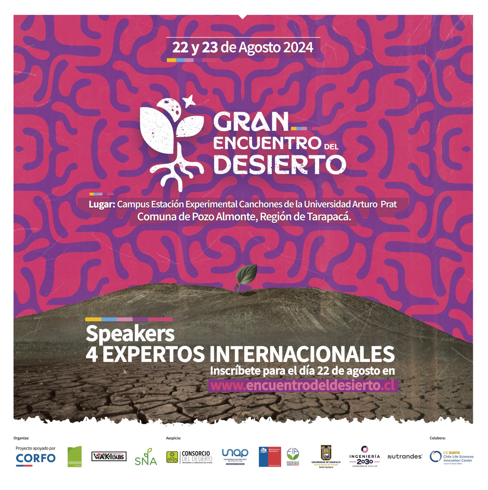 La Universidad Arturo Prat (UNAP) será la institución anfitriona del evento “Gran Encuentro de Agricultura del Desierto” que este 22 de agosto reunirá a especialistas de la NASA, Estados Unidos, Australia, Túnez y también investigadores de la Facultad de Recursos Naturales Renovables UNAP. La instancia se efectuará en el Centro Experimental del Conocimiento Canchones de la Casa de Estudios, comuna de Pozo Almonte, Provincia del Tamarugal, y se constituirá en un encuentro internacional científico, empresarial y público de la Región de Tarapacá y la macrozona norte para abordar desafíos de las nuevas economías del desierto.