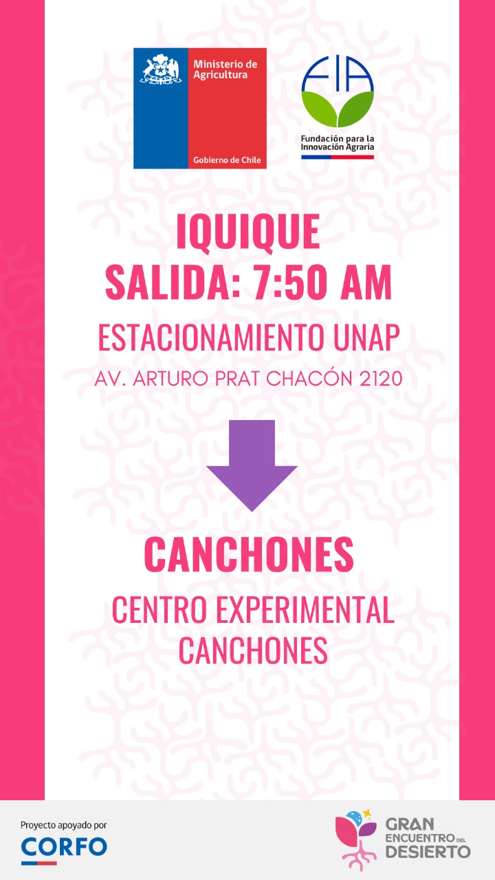 La actividad se efectuará específicamente en el contexto del programa “Agro del futuro: el Gran Encuentro de Agricultura del Desierto”, que es impulsado por Corfo a través de su línea de financiamientos Viraliza Eventos, orientada a instancias de alta convocatoria, de forma presencial y que promuevan el intercambio de conocimientos, generación de redes y traspaso de buenas prácticas relacionadas con el emprendimiento e innovación. Y en este caso, esas buenas prácticas se vinculan a la agricultura de la Provincia del Tamarugal.