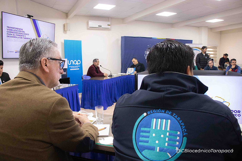 Con la presencia de actores claves de la región de Tarapacá, tanto públicos como privados, se realizó la Primera Mesa de Trabajo del Proyecto “FIC Transferencia Visibilización del Corredor Bioceánico para el Fomento y Desarrollo de Tarapacá”, que busca apoyar mediante una plataforma digital, una herramienta computacional de simulación y una amplia difusión la importancia y el potencial de un corredor bioceánico en la región, con esto se espera mejorar el conocimiento y ayudar en la toma de decisiones.