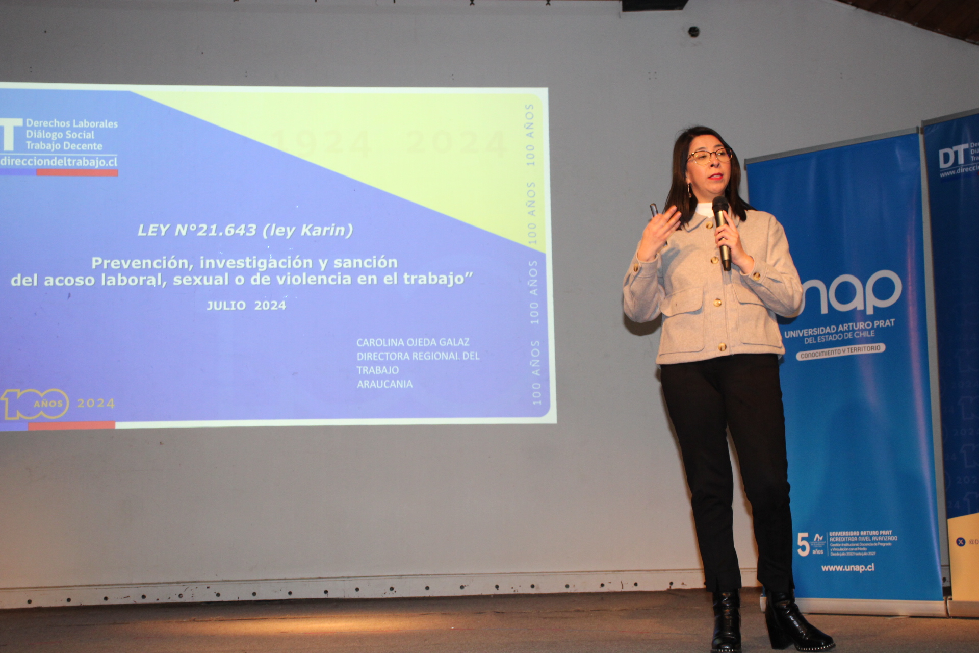 Universidad Arturo Prat Sede Victoria y Dirección Regional del Trabajo realizan concurrido seminario para seguir difundiendo la llamada "Ley Karin"