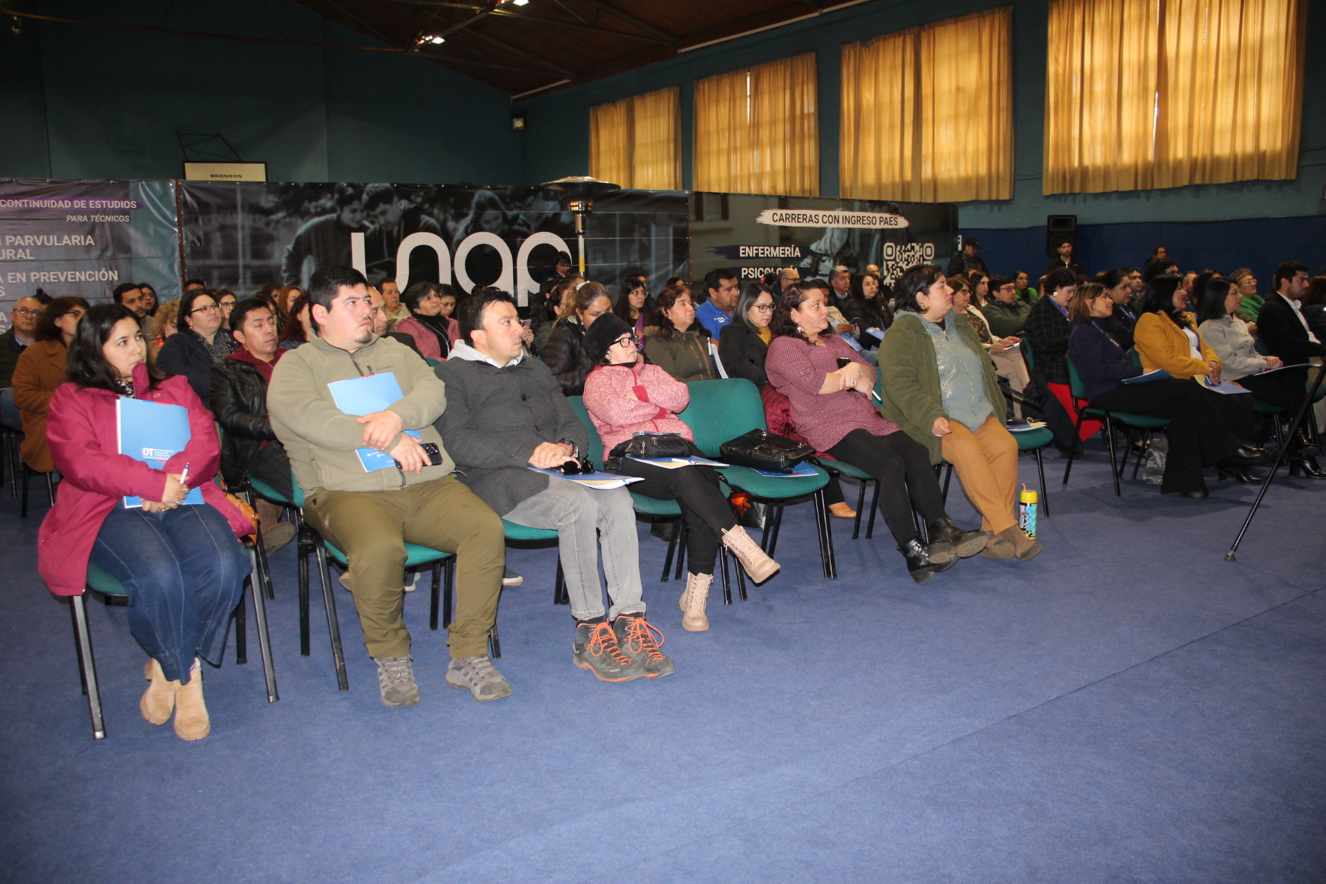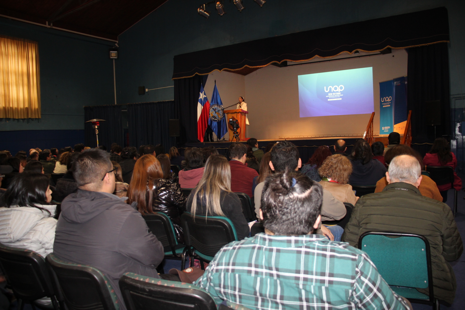 Realizado en el Gimnasio de la UNAP, el evento congregó a las principales autoridades de las respectivas entidades, como el Director de Sede, Juan Pablo López; su homóloga de la DRT, Carolina Ojeda; la también Directora del Hospital San José, Angélica Sanhueza; y la Presidenta de ASENF, Cecilia Rojas; además de la Directora Regional del Instituto de Seguridad Laboral (ISL), Minerva Castañeda; y la Presidenta de la Cámara de Comercio e Industrias de la comuna, María Inés Zamora; sumada a más de un centenar de asistentes, entre funcionarios y académicos de la Universidad, dirigentes sindicales, asociaciones de trabajadores y público en general, tanto de Victoria como de otras localidades de Malleco.