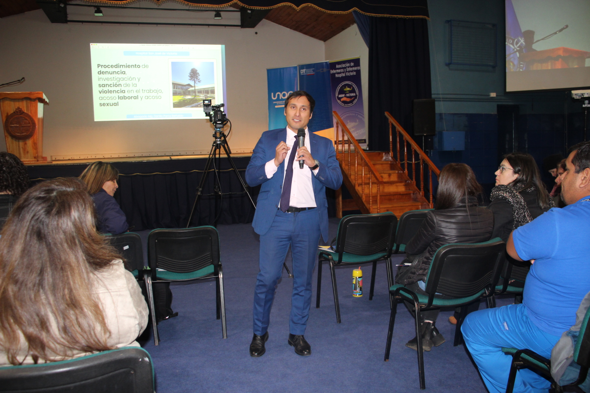 Iniciado con palabras de bienvenida del Director López, de la Directora Ojeda y de la Directora Sanhueza, el Seminario abarcó diversas exposiciones, partiendo con la Directora Regional del Trabajo, quien abarcó los “Alcances de la Ley 21.643”, siguiendo con el “Reglamento: protocolo y procedimiento de investigación”, a cargo de Pamela Baeza, Coordinadora de Relaciones Laborales de la DRT; culminando con el “Procedimiento de denuncia, investigación y sanción de la violencia en el trabajo, acoso laboral y acoso sexual”, presentado por el Abogado y Asesor Jurídico del Hospital San José, Danilo Parra; dando paso a una muy necesaria ronda de preguntas y consultas de la concurrencia.