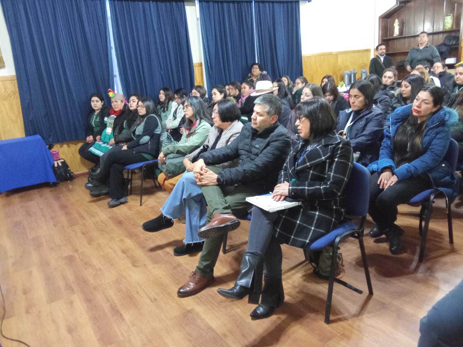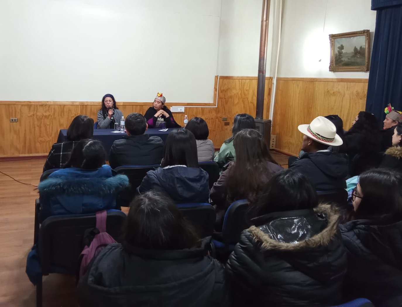 Desarrollado en el Salón Auditorio, el encuentro contó con la presencia del Encargado de la Unidad de Docencia, Daniel Martínez, en presentación de la Dirección de Sede, al igual que por una delegación de autoridades de la Facultad de Ciencias Humanas de Casa Central, encabezada por la Decana Dra. Marcela Quintana, más estudiantes de primer y segundo año de EPI junto a la Jefa de la especialidad, Claudia Baltierra; quienes escucharon los testimonios de las invitadas al evento: la aprendiz permanente del Mapuche kimün (conocimiento) e integrante de la Comunidad Contreras, Dámaris Contreras; y la Educadora de Párvulos y miembro del equipo del Jardín Infantil del Lof Temulemu, Marina Pichún.
