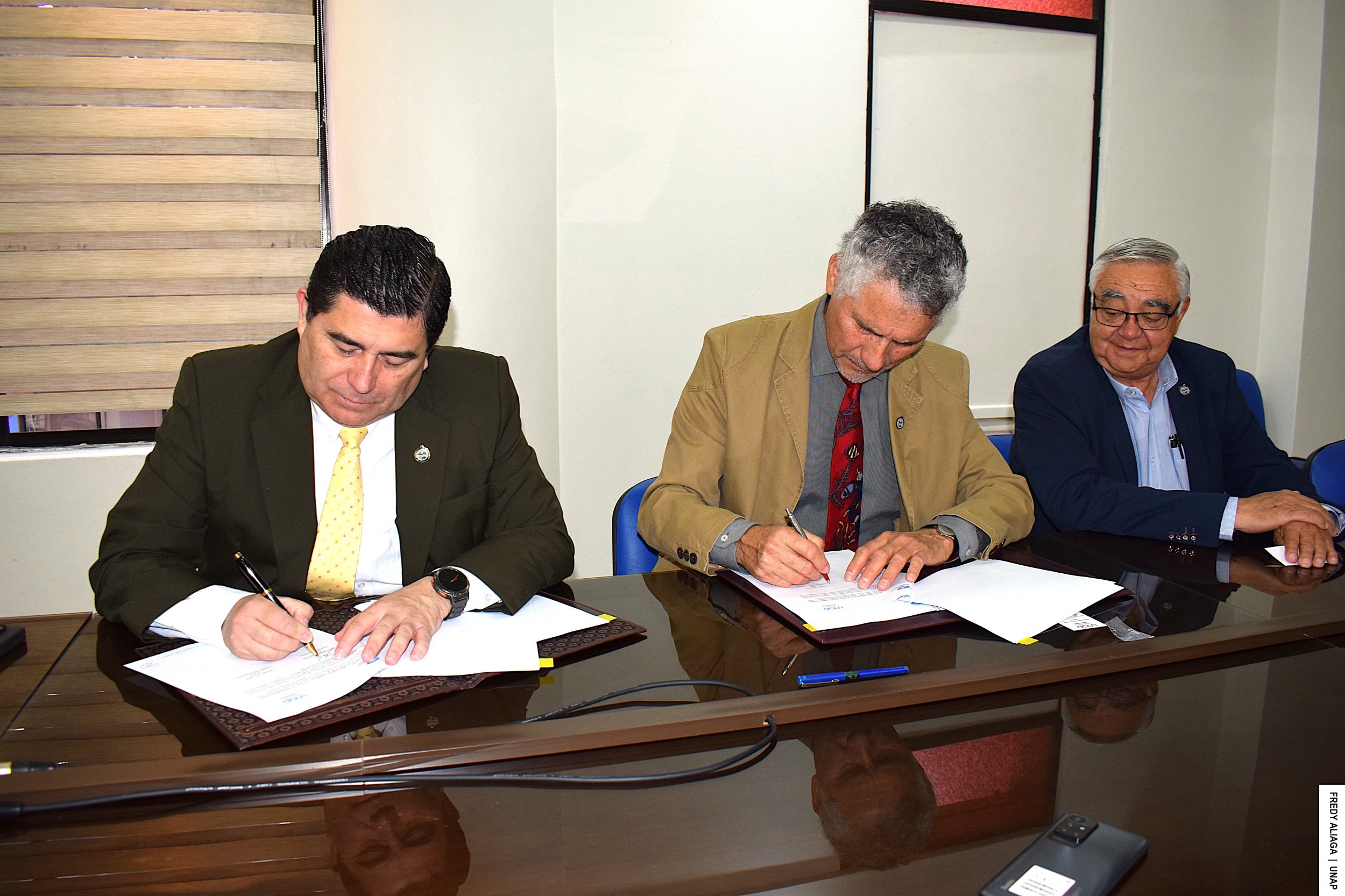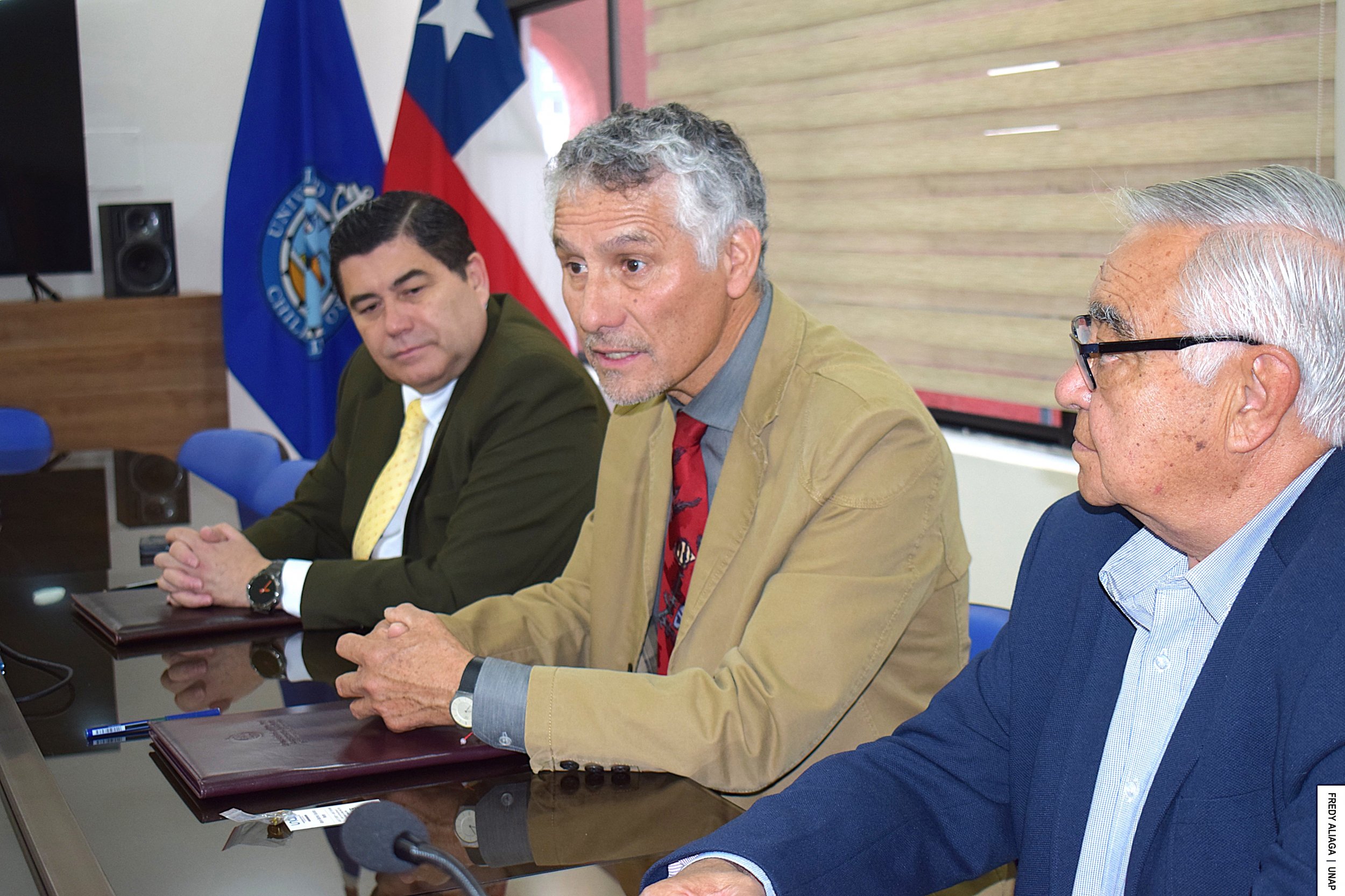 La ceremonia se efectuó en la Casa Central de la Institución, en Iquique, con la participación del jefe de Gabinete de Rectoría, Eduardo Huerta Vera, y el decano de la Facultad de Recursos Naturales Renovables UNAP, Mario Aguilar Pulido, quien asumió como presidente del Comité Científico de ese evento académico.