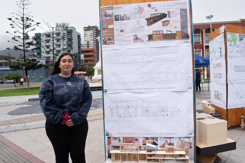 Por otra parte, la directora de Docencia Michelle Espinoza Lobos, añadió que” Desde la perspectiva más curricular, la carrera de arquitectura tiene desde los primeros años el tema del territorio haciendo análisis, construyendo y entregando mejoras a la comunidad. Me parece fantástico que toda esa labor sea apreciada por las y los estudiantes de los distintos establecimientos de Iquique quienes pudieron ver el desarrollo de las ideas y como esto se relaciona con su entorno. Ahora también es importante como estos futuras y futuros arquitectos aprenden a comunicar a otros su trabajo, porque la maqueta no habla por sí sola y ellos necesitan el conocimiento para poder presentarla y hacerles entender al resto”.