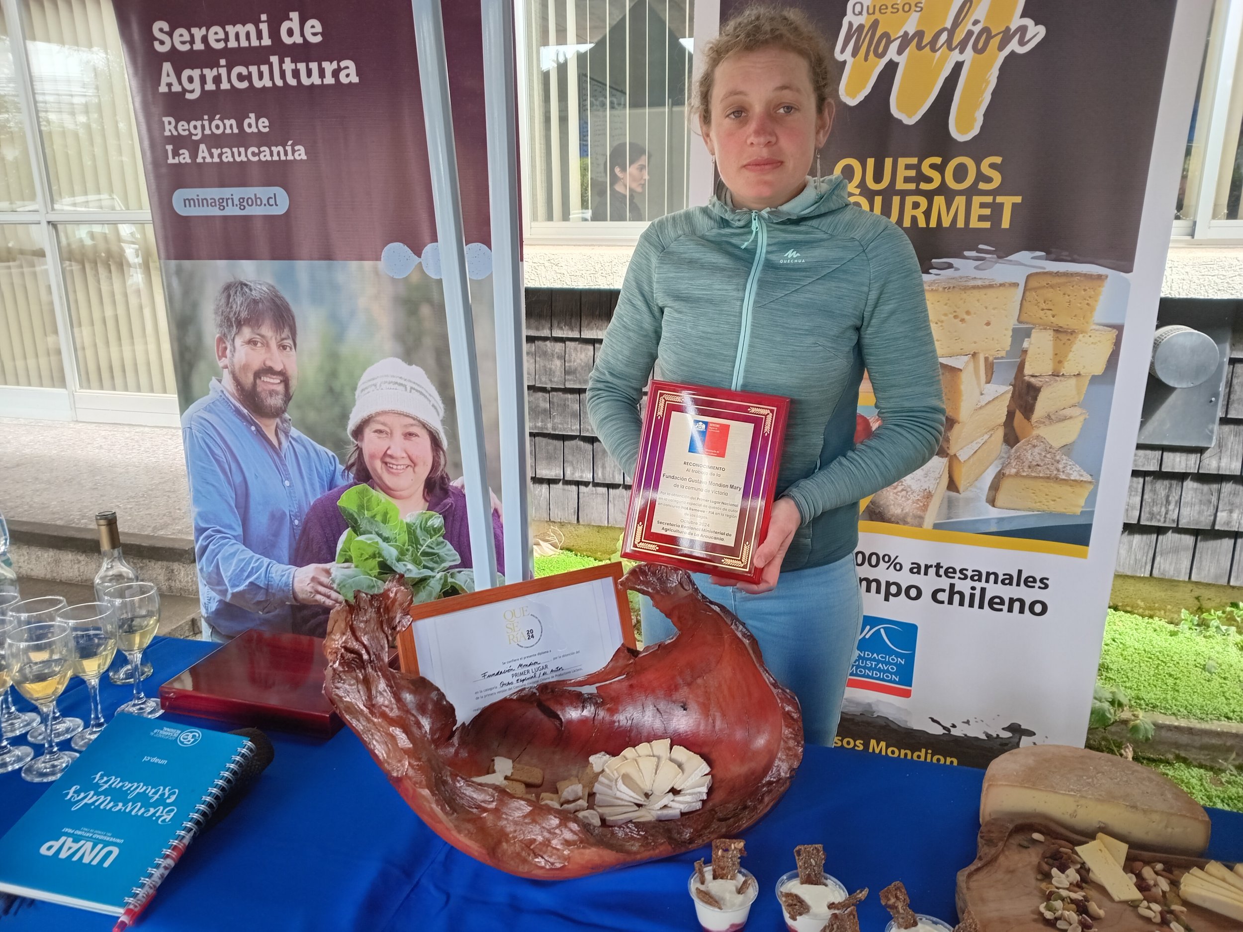 Emocionada y contenta se mostró Adele Lecocq, Gerenta de la Fundación sin fines de lucro Gustavo Mondion Mary, esto tras haber participado exitosamente en la primera versión del Concurso Nacional de Productores Lácteos “La Quesería 2024” en Osorno, en donde la entidad obtuvo el primer lugar en la categoría “Especial de autor” por su queso Raclette, lo cual le valió un reconocimiento entregado por la Secretaría Regional Ministerial de Agricultura en sus dependencias en Temuco.