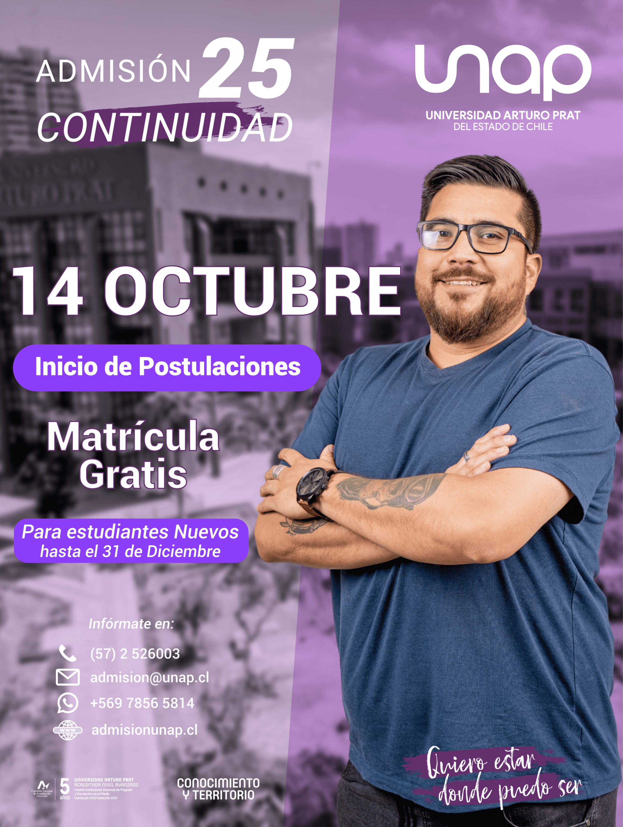 Si bien el plazo se extiende hasta el 31 de marzo 2025, es importante recalcar en que los cupos son limitados, por lo que se recomienda postular lo antes posible, a fin de asegurar una vacante. Para más información, pueden escribir a los profesionales de la Unidad de Admisión, a los correos electrónicos rimirand@unap.cl rpenailill@unap.cl y navalenzue@unap.cl