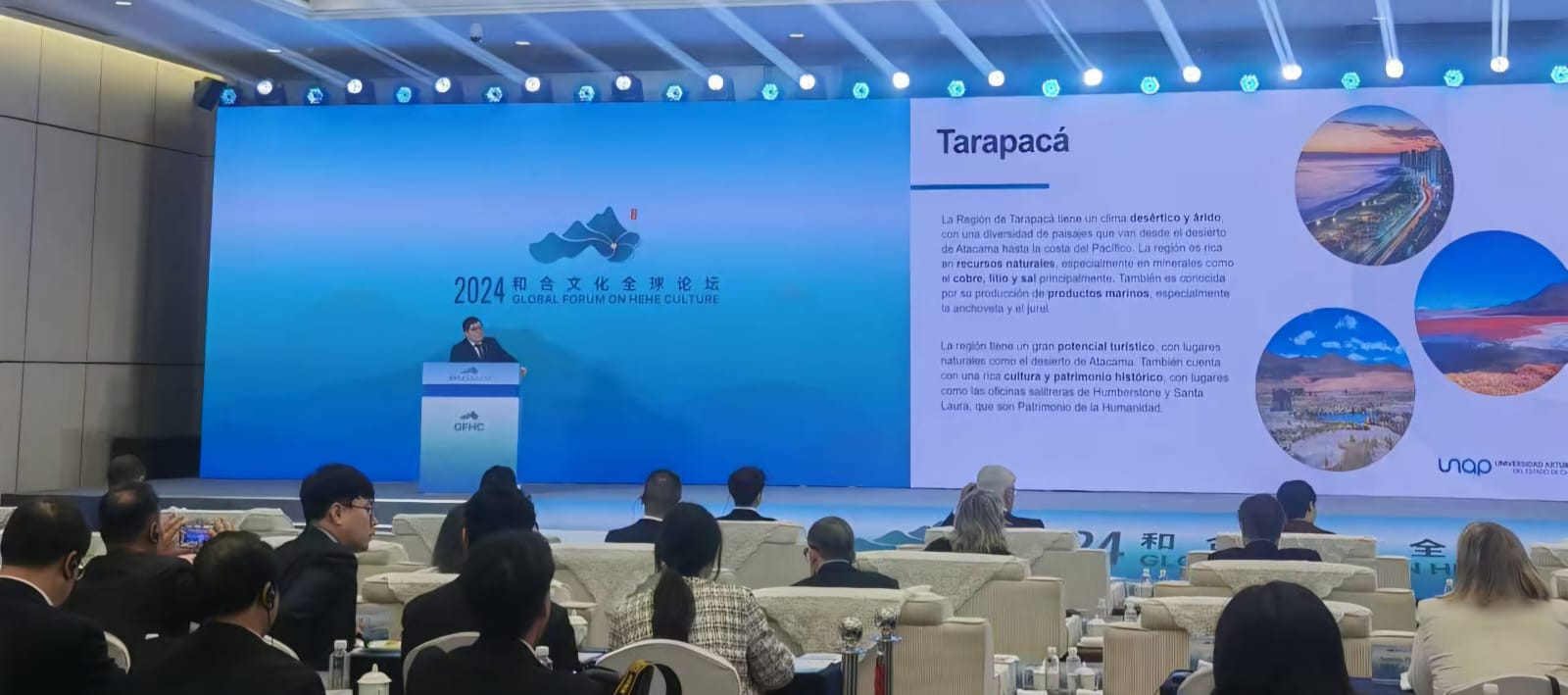 Tales lazos fueron fortalecidos simbólicamente por el rector de la UNAP, Alberto Martínez, durante el “Foro Global de la Cultura Hehe 2024” en Taizhou, donde en representación de Iquique y la Región de Tarapacá, integró el lanzamiento de la denominada “Iniciativa para Profundizar el Intercambio Cultural, Económico, Comercial y la Cooperación entre Ciudades Hermanas”.