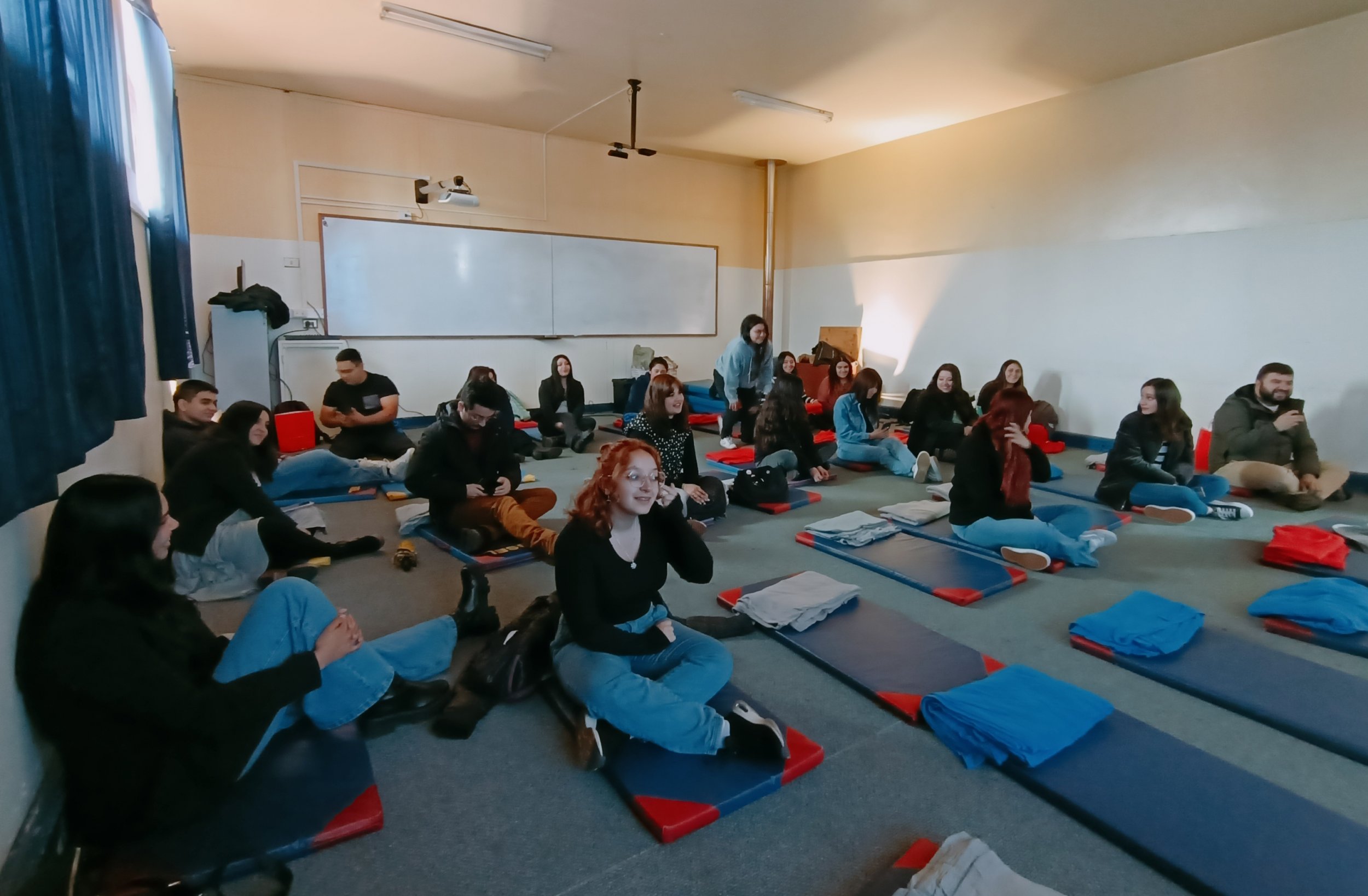 La ceremonia pasó después a la entrega de variados reconocimientos, distinguiendo a los tutores Bárbara Parra, de Kinesiología; Leonardo Lillo, de Derecho; y Catalina Gómez, de TNS en Administración de Empresas; además del conocido Enfermero Pablo Garrido, quien exitosamente realizó tutorías académicas para las especialidades de PAES y TNS entre 2015 y 2017, trabajando en la actualidad en la Unidad de Paciente Crítico del Hospital Mauricio Heyermann de Angol, y como Académico, tanto en el CFT Estatal de La Araucanía como en la UNAP en Malleco; llegando así al cierre del encuentro en el recinto deportivo, culminando con una novedosa sesión de sonoterapia en el aula, que sorprendió a los presentes.