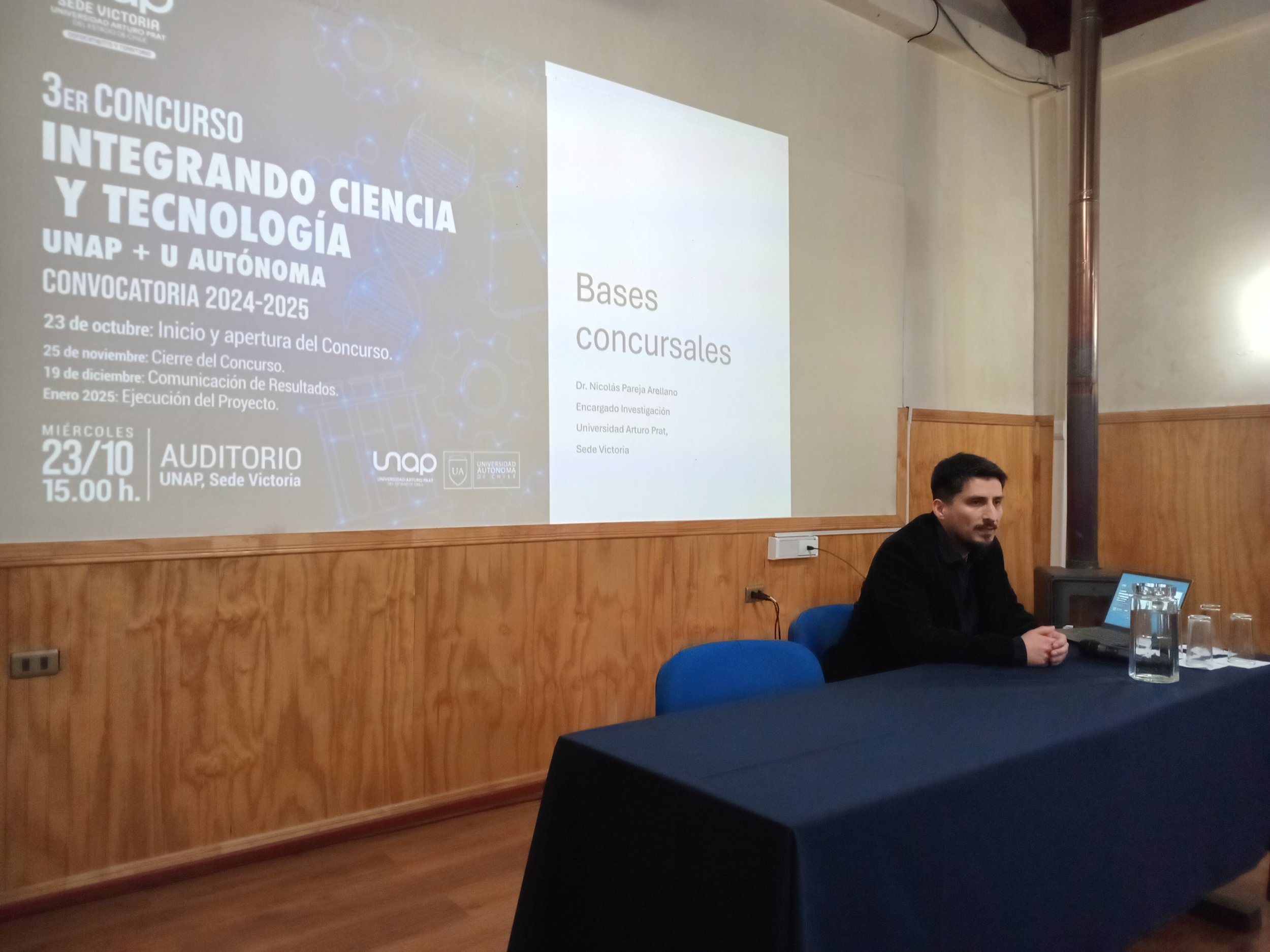 “Estas instancias son muy enriquecedoras para fomentar la investigación, por lo que agradezco a los académicos que vinieron desde Temuco”, señaló por su parte el Dr. Nicolás Pareja, Encargado de la Unidad de Investigación en la Sede Victoria, “para así potenciar la investigación y llevarla a un nuevo nivel, construyendo una base más sólida para continuar con las investigaciones en general, generando nuevos proyectos e iniciativas interdisciplinarias, permitiendo la coordinación de los docentes de ambas instituciones para escalar a otros niveles como los proyectos Anillos, FONDECYT o los Núcleos Milenio de la Agencia Nacional de Investigación y Desarrollo”, expresó el también responsable del concurso en la Universidad Arturo Prat en Malleco.