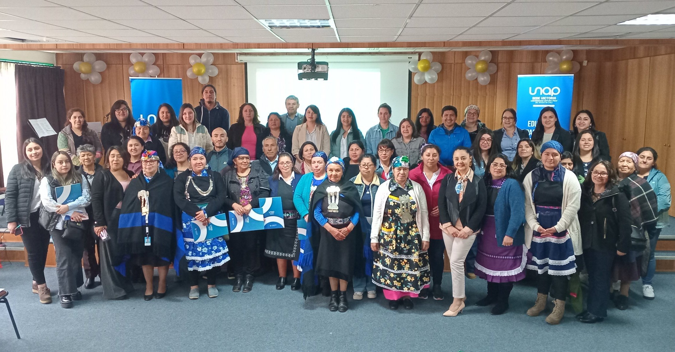 Desarrollado en el Salón Auditórium Joel Chandía Pino, el evento de finalización contó con la presencia de los asistentes a los talleres “Cosmovisión Mapuche y la práctica pedagógica” y “Estrategias metodológicas del nivel de Educación Parvularia para la revitalización de la lengua y cultura Mapuche”; además de los representantes de la UNAP en Malleco, CONADI, el Servicio Local de Educación Pública (SLEP) Costa Araucanía, la Junta Nacional de Jardines Infantiles (JUNJI) y el Municipio de Temuco, todos integrantes de la Mesa de Educación Intercultural Bilingüe (EIB).