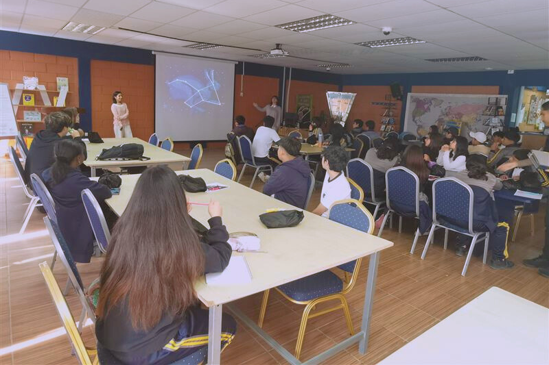 Estudiantes de séptimo básico a segundo medio disfrutaron de charlas, talleres y actividades prácticas en las que exploraron los enigmas de la ciencia del cosmos. Todos los talleres prácticos consistían en una parte teórica abordada desde charlas breves, y una parte práctica abordada con materiales concretos asociados a las temáticas de cada sesión: “Sistema Solar a escala”, “Constelaciones y Eclíptica”, “Espectroscopía”, “Exoplanetas”, “Gravitación” y “Planetario Virtual - Stellarium”.