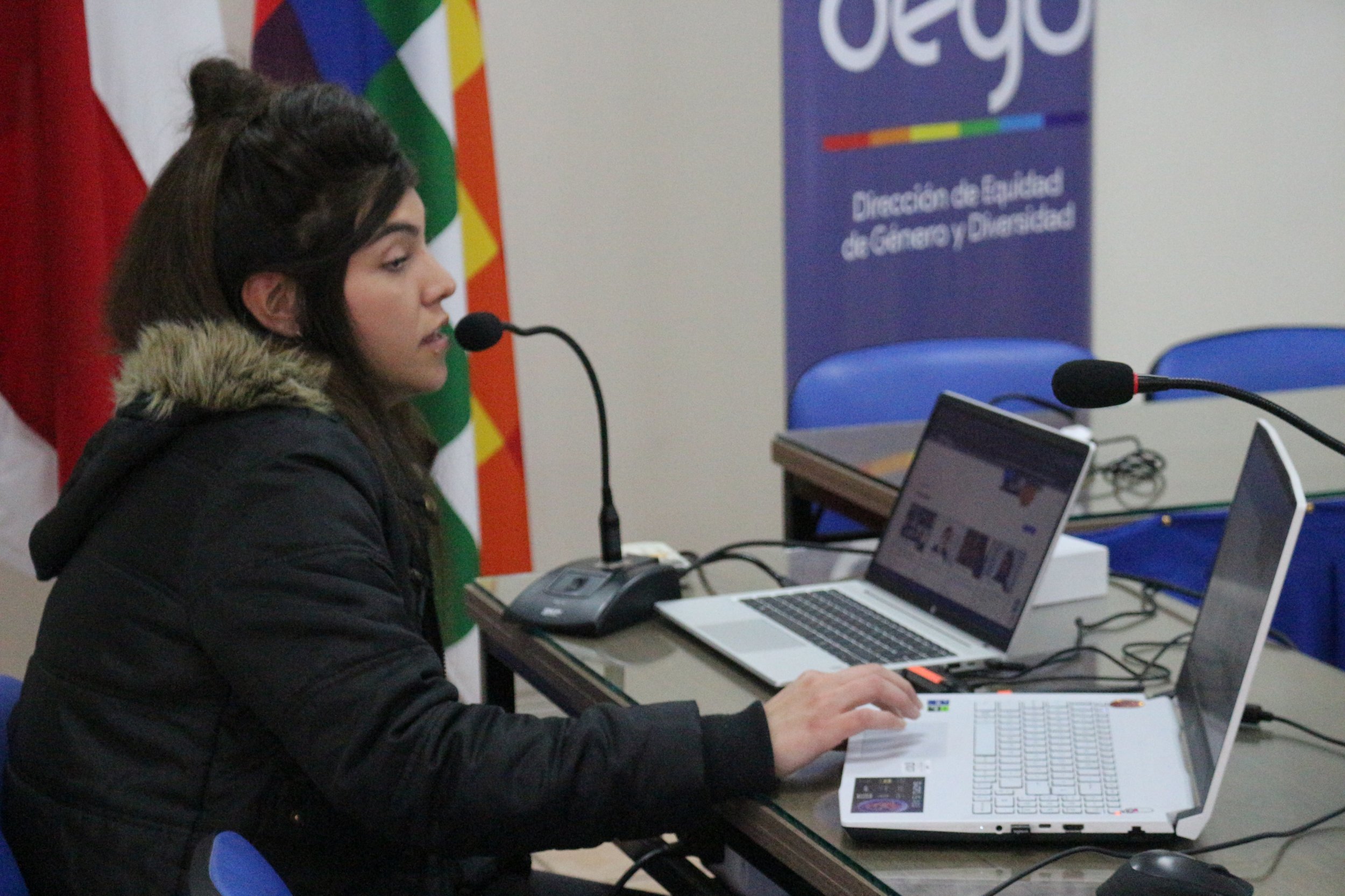 La exposición sobre la funcionalidad y operatividad del portal web estuvo a cargo de Sol Pazmiño Jorratt, periodista del Proyecto y de Francisca Poblete Balaic, diseñadora gráfica profesional de InES Género.