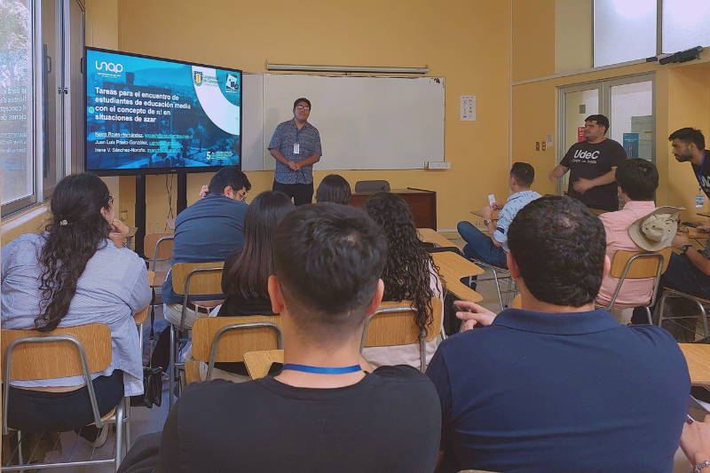 En este marco, participaron tres académicos y once estudiantes de la Carrera de Pedagogía en Matemática y Física, quienes ofrecieron tres ponencias, dos talleres y dos carteles. Las ponencias fueron: "El encuentro con la distribución binomial: diseño de tareas para estudiantes de educación media", "Gráficos estadísticos con apoyo de software educativo: ¡diseño de tareas para estudiantes de 8° básico” y “Tareas para el encuentro de estudiantes de educación media con el concepto de n! en situaciones de azar".