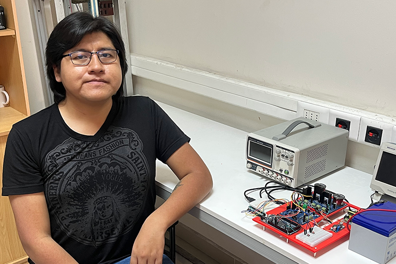 “A lo largo de mi formación profesional, siempre me atrajeron las aplicaciones prácticas de la electrónica, especialmente aquellas relacionadas con la energía solar. En este sentido, el proyecto de investigación me permitió profundizar en diversos aspectos de este campo. Fue un proceso desafiante que exigió un gran esfuerzo para alcanzar los objetivos establecidos. En nuestra especialidad, llevar a la práctica el diseño de un circuito electrónico complejo representa un desafío mayor, ya que frecuentemente surgen inconvenientes que solo se manifiestan en la etapa experimental. Este proceso fortalece la capacidad para afrontar la frustración. Superar estos obstáculos, sin embargo, genera una profunda satisfacción personal. La resiliencia adquirida será clave para enfrentar futuros desafíos profesionales”, comentó Samuel Zenteno.