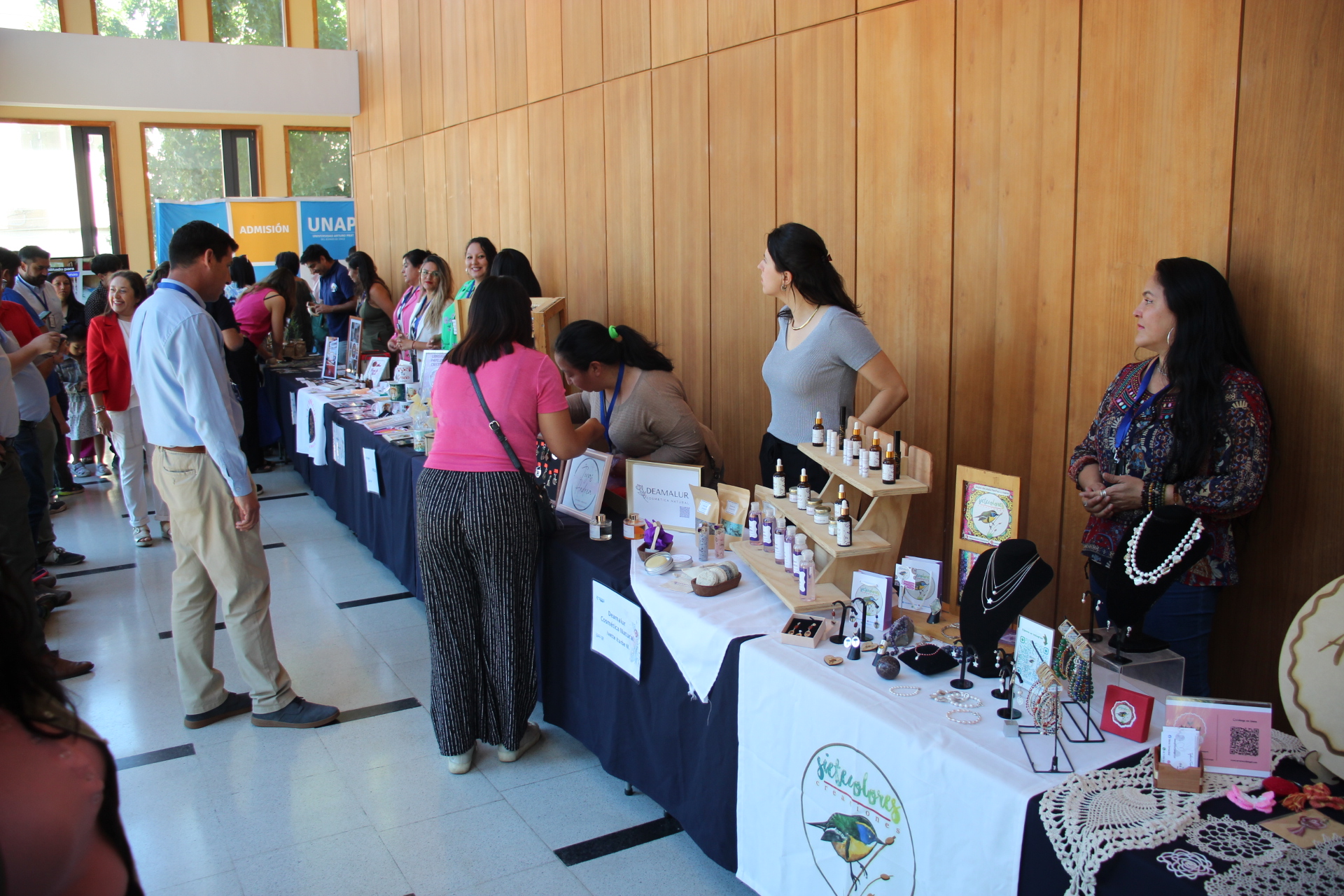 “Ha sido muy satisfactorio porque la mayoría somos mujeres, madres y tenemos miles de roles”, afirmó Iturbe Núñez; “entonces, hay que dedicar un tiempo para que nosotras podamos desarrollarnos más allá del área familiar y desafiarnos a nosotras mismas, pudiendo aprender aspectos que no son netamente de nuestras profesiones, como finanzas, costos y marketing, y el que instituciones como Corfo y la Universidad Arturo Prat nos brinden cursos de manera gratuita, es algo que no tiene precio”, evidenció la dueña del emprendimiento de cosmética natural “Deamalur”, quien hizo gala de sus productos en la feria instalada afuera del Salón Auditorio, al igual que los demás emprendedores, mostrando un gran abanico de opciones, entre artesanía, joyería, plantas y arte textil, por mencionar solo algunas.