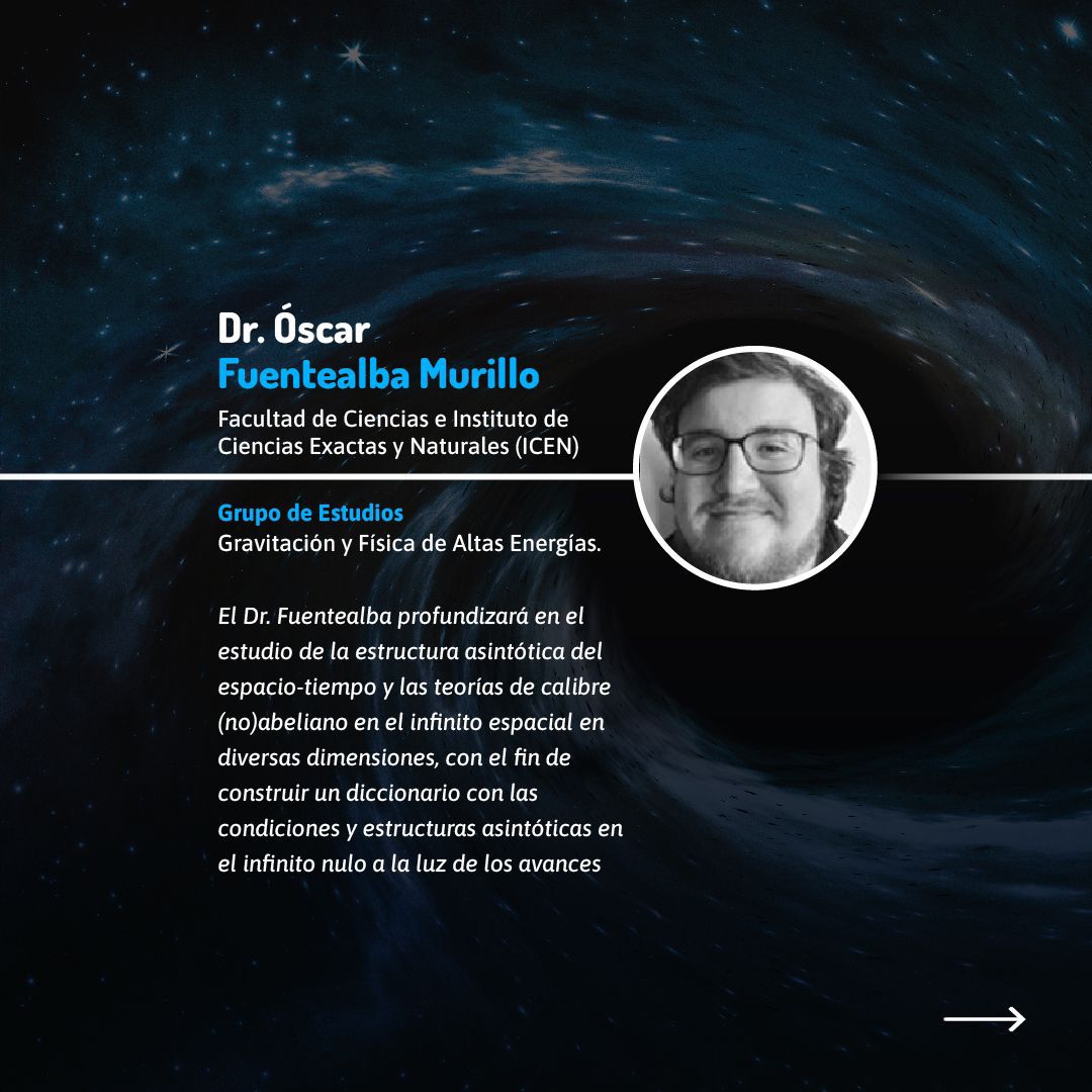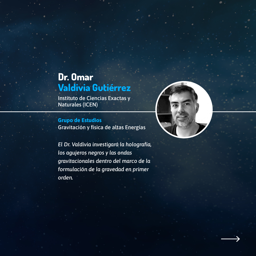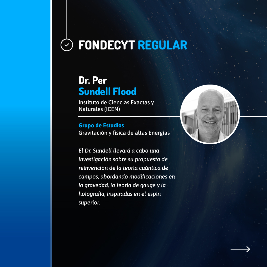 Los proyectos FONDECYT Regular adjudicados son encabezados por investigadoras e investigadores de diversas facultades y grupos de estudio. El Dr. Omar Valdivia Gutiérrez, de la Facultad de Ciencias e Instituto de Ciencias Exactas y Naturales (ICEN), investigará aspectos fundamentales de la gravedad y las ondas gravitacionales, mientras que el Dr. Per Sundell Flood, también del ICEN, explorará nuevas perspectivas en la teoría cuántica de campos.