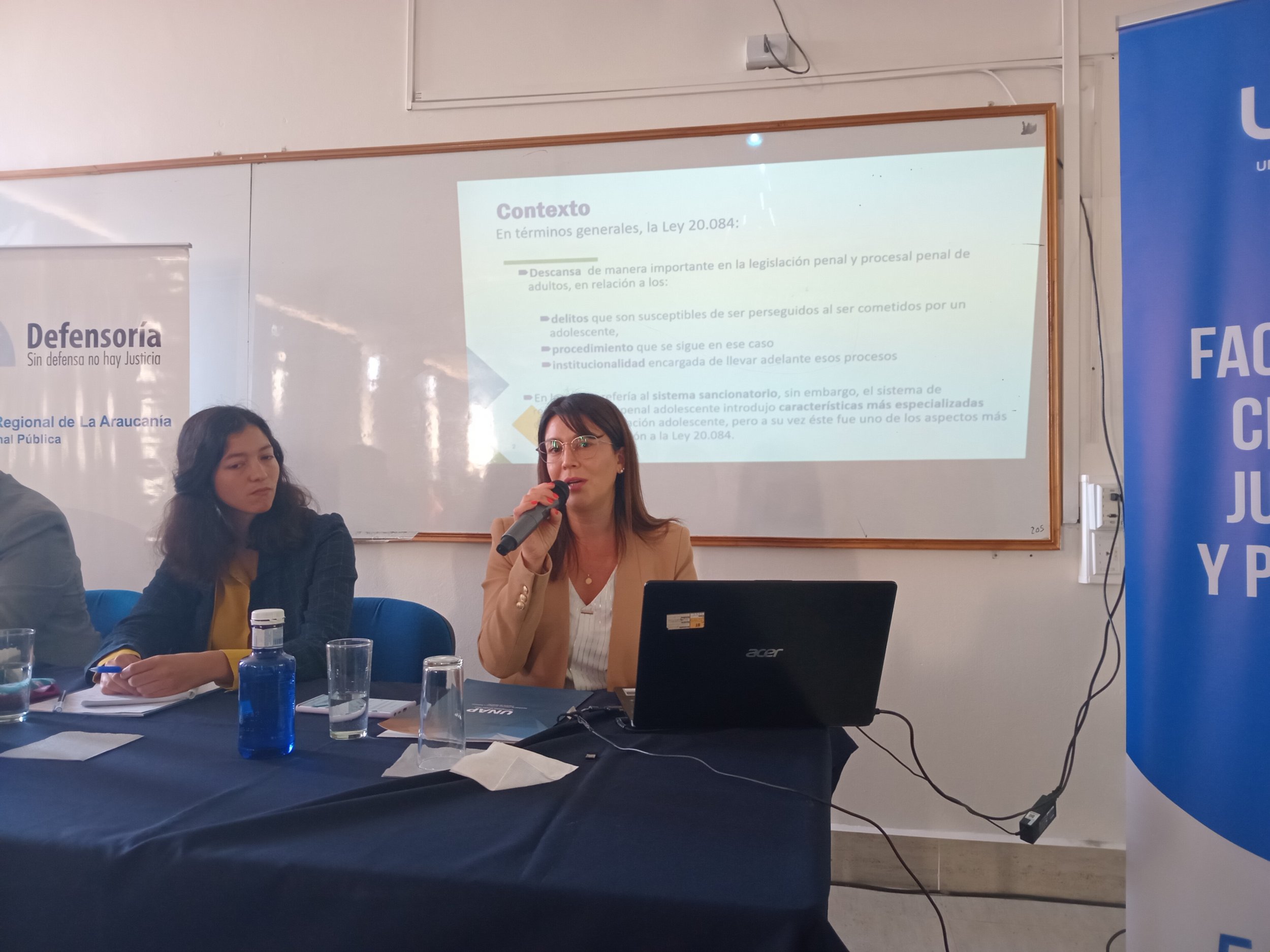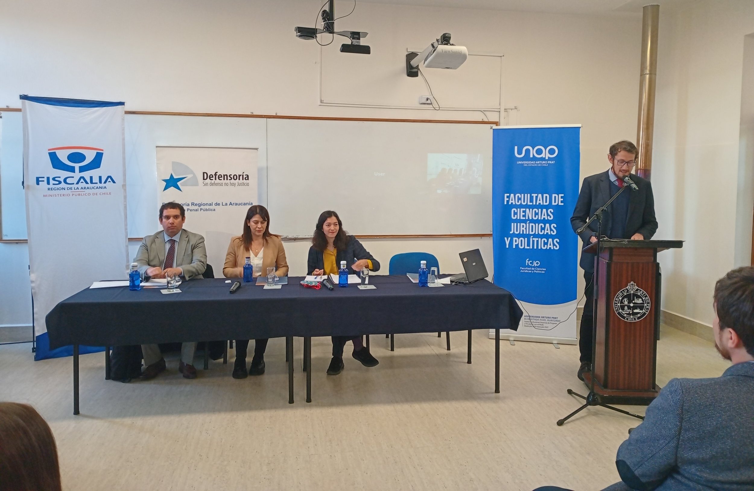 El Seminario continuó de lleno con las ponencias: “Rol de la Fiscalía en materia de justicia penal juvenil en Chile”, por Daniela San Martín Salazar, Fiscal Adjunto especializado en Responsabilidad Penal Adolescente; “Reformas a la Ley de Responsabilidad Penal Adolescente desde la mirada de la Defensa”, a cargo de Mario Villablanca Morales, de la Unidad de Defensa Penal Juvenil de la Defensoría Penal Pública de La Araucanía; y “Contenido educativo de la intervención sobre adolescentes infractores: mirada comparativa entre la nueva Ley penal adolescente chilena y la Ley de responsabilidad española”, dictada por la Dra. Elisabet Cueto Santa Eugenia, todo bajo la moderación del Académico de la UNAP y uno de los principales organizadores, el Dr. Miguel Ángel Alarcón Cañuta.