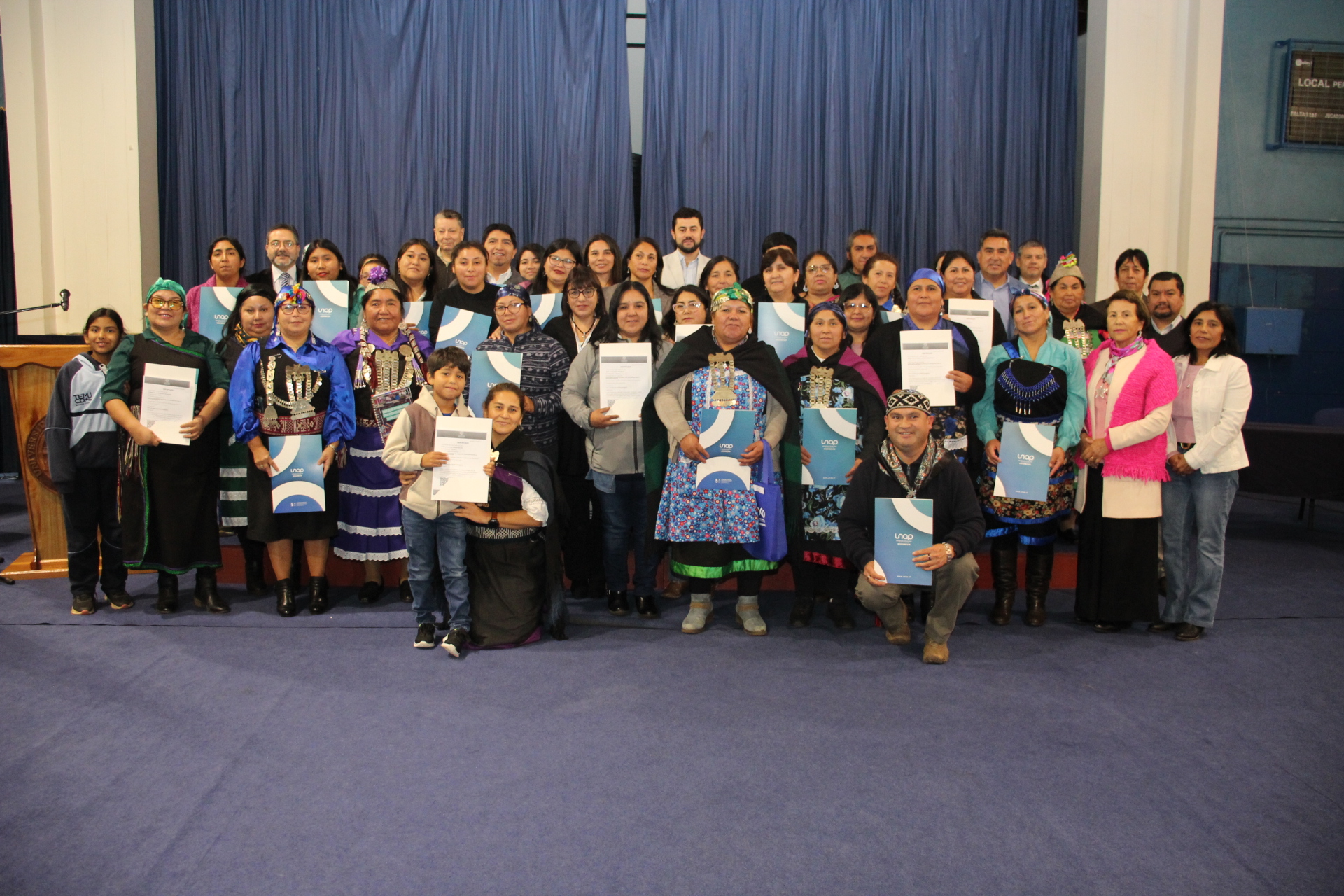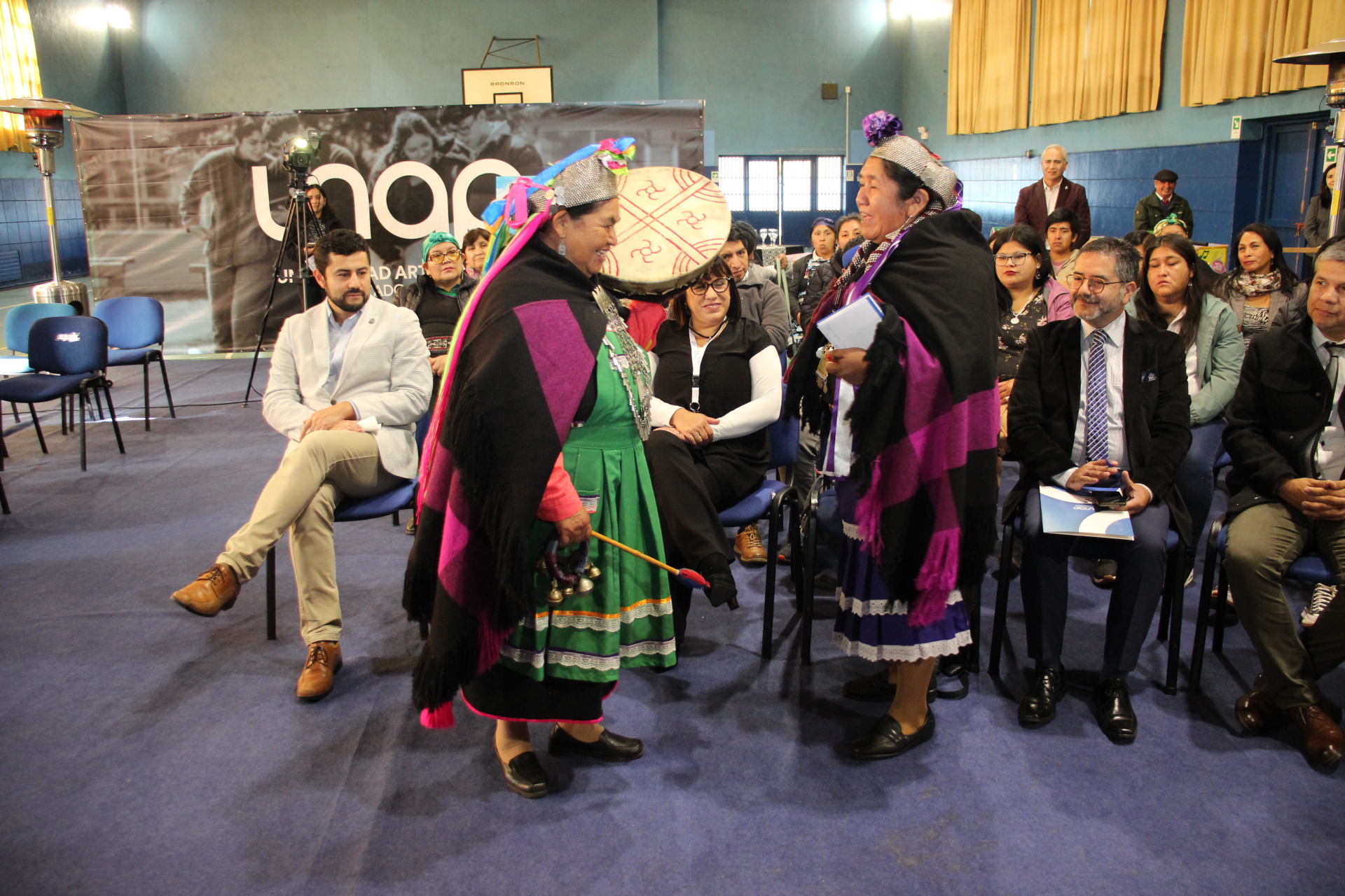 Efectuada en el Gimnasio de la UNAP, la importante iniciativa congregó tanto a las principales autoridades de la Sede como a representantes de CONADI, de la Seremi de Educación, del Servicio Local de Educación Pública (SLEP) Costa Araucanía, de la Junta Nacional de Jardines Infantiles (JUNJI) Araucanía, del Departamento de Educación Municipal (DAEM) de Temuco, de la Oficina de Asuntos Indígenas del Municipio de Victoria y de variadas comunidades de distintos sectores de la región, destacándose la presencia de la reconocida Consejera Nacional, Ana Llao Llao.