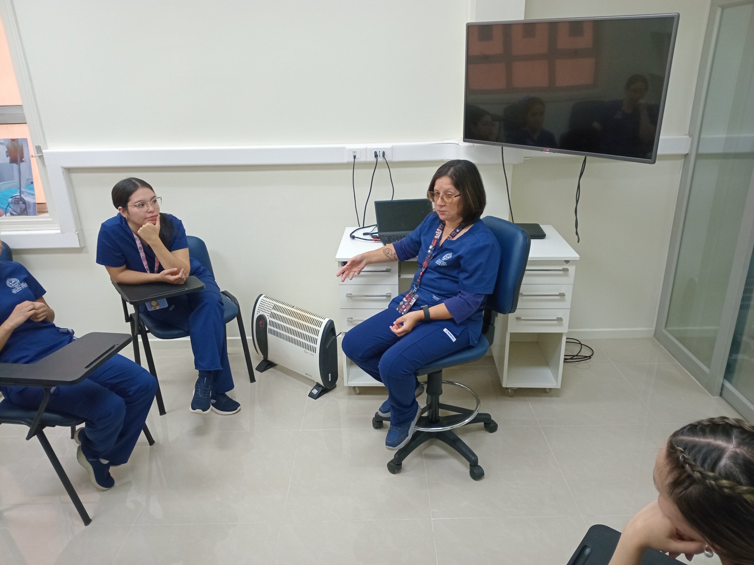 En la oportunidad, y en el marco de la asignatura “Cuidados Enfermeros en el niño y adolescente en el continuum salud enfermedad”, a cargo de la Académica María Soledad Calderón Calderón, las y los enfermeros en formación fueron ingresando de forma grupal al recinto para participar de un escenario del área infantil, con la finalidad de tomar decisiones sobre el manejo de un paciente pediátrico con patología respiratoria, demostrando además sus capacidades para trabajar en equipo y delegar funciones a los técnicos de la disciplina (TENS), terminando con un espacio de reflexión para opinar sobre los aciertos y errores cometidos durante el proceso.