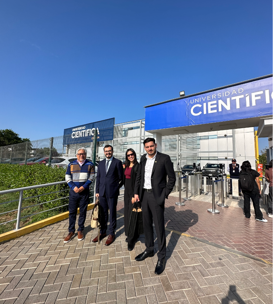 Posteriormente, en la Universidad Peruana Cayetano Heredia, reconocida por su liderazgo regional en ciencias médicas y biológicas, la delegación sostuvo una serie de encuentros con el Vicerrector de Investigación, Dr. Carlos Cáceres; el Dr. Francisco Villafuerte, Director de los Laboratorios de Investigación y Desarrollo (LID); la Bióloga Ana Gabriela Sobarzo, Directora de Innovación y Emprendimiento; y Violeta Pérez, Jefa de la Oficina de Promoción de la Investigación. La visita incluyó un recorrido por los Laboratorios de Endocrinología, Neurobiología del Desarrollo, Productos Naturales, Metabolismo, así como el Instituto de Medicina de Altura, la biblioteca histórica y salas de simulación avanzada.
