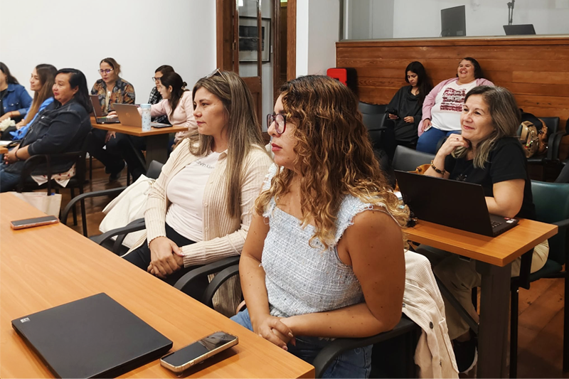 El taller comenzó con una ponencia centrada en la identidad regional de Tarapacá, una invitación a mirar la historia, el paisaje humano y la riqueza cultural con ojos pedagógicos. Luego, las directoras pasaron a la acción, describieron el entorno de sus jardines infantiles y trabajaron en sintetizar sus relatos en palabras clave, compartiéndolos en una ronda colectiva de análisis, reflexión y escucha activa.