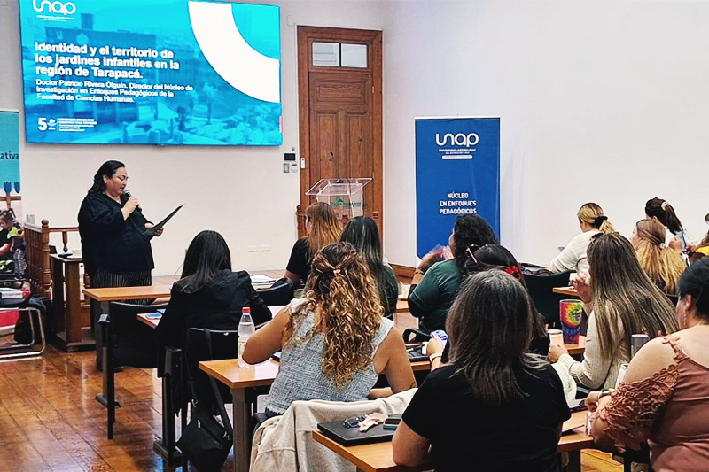 Con mapas mentales, relatos cargados de historia local y una energía transformadora, el doctor Patricio Rivera Olguín, académico de la Facultad de Ciencias Humanas y director del Núcleo de Investigación en Enfoques Pedagógicos (NEP) de la Universidad Arturo Prat, encabezó un taller para directoras de jardines infantiles de la Junta Nacional de Jardines Infantiles (JUNJI) de la región de Tarapacá.