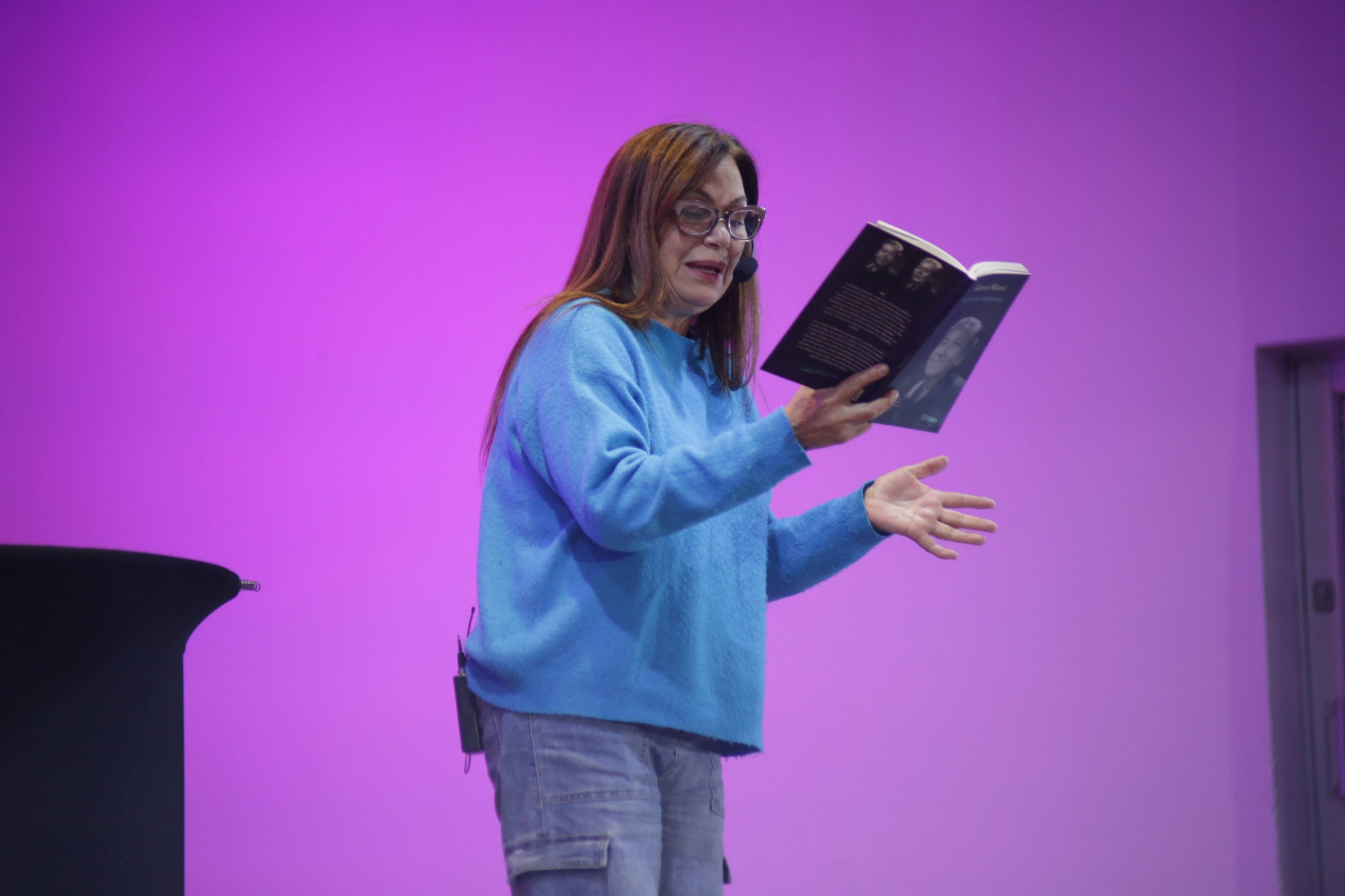 La reconocida actriz nacional Solange Lackington también fue parte del Seminario, enfatizando que “a mí me encanta poder salir de Santiago e ir a distintos lugares, compartir con la gente y qué mejor que en esta instancia donde aquí se está celebrando no solo el Día del Libro y este Seminario de mediación lectora, los 80 años de Mistral, que es un personaje que vengo interpretando hace ya 6 años y me encanta poder acercar a la gente lo que es mi visión de quién es Mistral para mí y de lo que he aprendido de ella. Estoy muy feliz”.