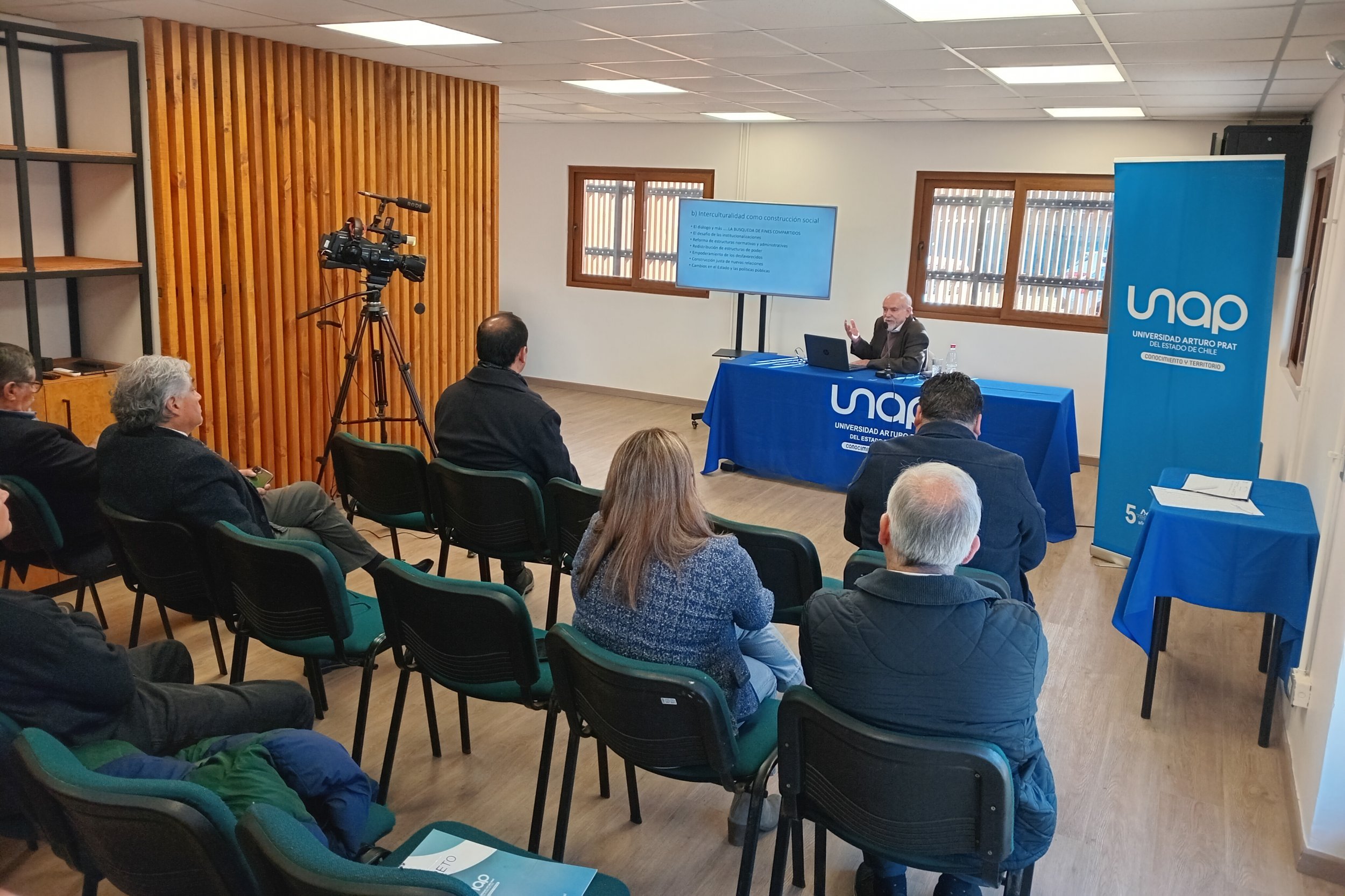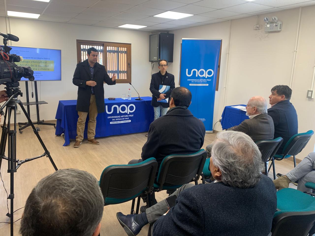 El evento inició con los saludos del Director de la UNAP, Juan Pablo López Pinilla; y del Académico responsable de la Vinculación con el Medio del Instituto, Dr. Luis Orellana Urtubia, logrando abarcar a una gran diversidad de público, entre estudiantes, académicos, administrativos y de la sociedad en general, quienes se dieron cita para escuchar la relevante exposición del Doctor en Sociología por la Universidad Católica de Lovaina de Bélgica, quien buscó “analizar la interculturalidad en una región donde se vive de manera bastante intensa el encuentro de culturas, profundizando en aspectos como cuáles son las dificultades epistemológicas de abordar diálogos, además de entender que no se trata de una interacción simple, ya que detrás hay culturas, pueblos y experiencias históricas”, explicó el también Docente titular de la Universidad de Santiago de Chile (USACH).