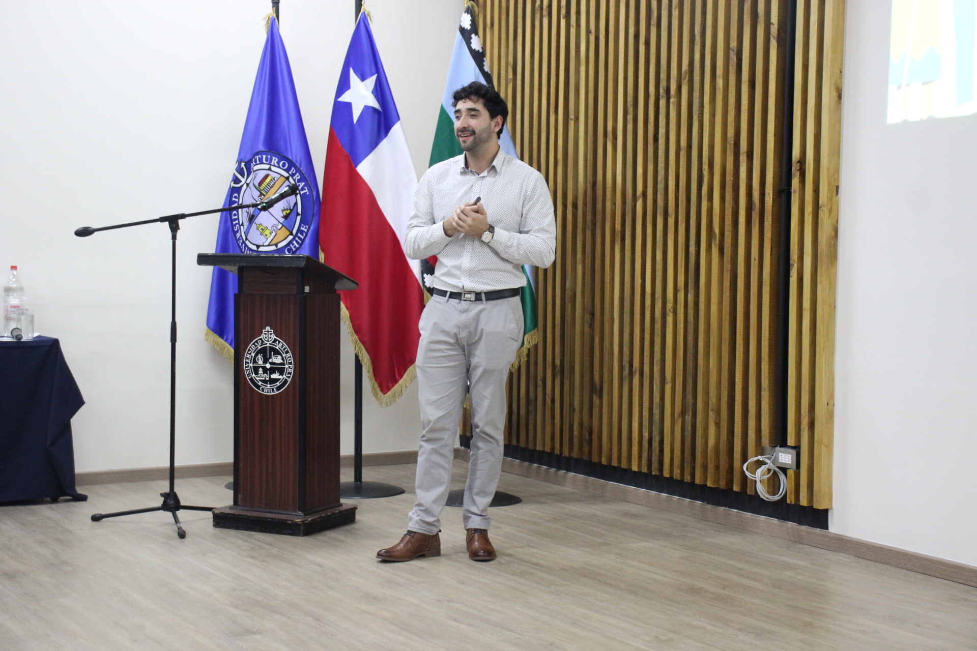 La actividad de cierre contó con los saludos tanto del Director de Sede, Juan Pablo López Pinilla, como del jefe de carrera, Carlos Sepúlveda; continuando con la exposición del Dr. Cigarroa, quien presentó parte de los avances del primer año de resultados de su proyecto Fondecyt de Iniciación N°11240532, titulado “Efectividad de la telehabilitación sincrónica de Fisioterapia en la condición física, estado funcional y la calidad de vida en personas mayores frágiles”, pasando luego a un llamativo número de baile Fit Folk (el que mezcla deporte con folklore y cultura), realizado con entusiasmo por las mujeres de la comunidad Huichacura-Cayuqueo, pertenecientes al proyecto Fondeporte.