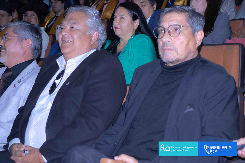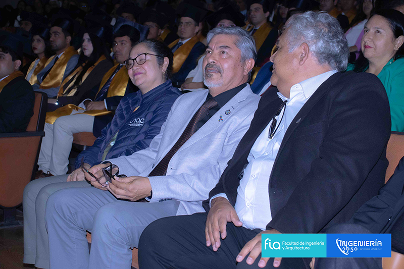 En la ocasión el decano de la Facultad de Ingeniería y Arquitectura, Miguel Segovia Rivera, hizo un breve repaso por los logros de la facultad en el último tiempo, pero, además, instó a los egresados a llevar el sello unapino con orgullo. “En la FIA creemos que la ingeniería y la arquitectura no solo se trata de cálculos, planos o simulaciones. Se trata también de hacerse cargo. Hacerse cargo de los problemas reales que afectan a nuestras comunidades. De responder con conocimiento y compromiso ante los desafíos del agua, la vivienda, la energía, la movilidad o los desastres naturales. Hoy, no solo egresan con un título profesional, sino también con experiencias de emprendimiento, vinculación internacional y formación integral que los posicionan como agentes de cambio.”