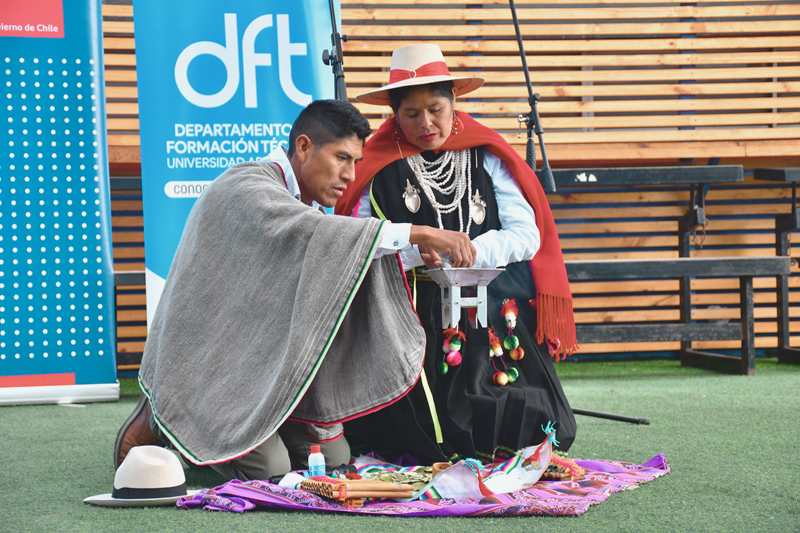 Es así como, en la terraza de la Facultad de Ciencias Humanas y con la presencia del subdirector Nacional de CONADI, Juan Pablo Pérez, autoridades académicas, integrantes de la comunidad universitaria y las futuras profesionales, se llevó a cabo la ceremonia de lanzamiento de la carrera Técnico de Nivel Superior en Enseñanza de la Lengua y Cultura Aymara en Educación de Párvulos.