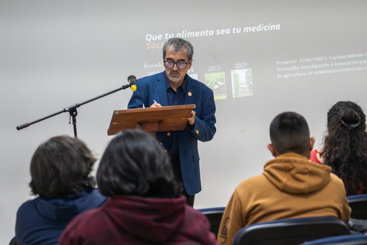 Uno de los momentos destacados fue la conferencia del Dr. Miguel Urrestarazu Gavilan, profesor titular de la Universidad de Almería (España), quien expuso sobre los microgreens como alternativa sustentable en regiones con escasez hídrica. Su participación se enmarcó en el proyecto FOVI 230013, liderado por Pilar Mazuela Águila, decana de la Facultad de Ciencias Agronómicas de la Universidad de Tarapacá.